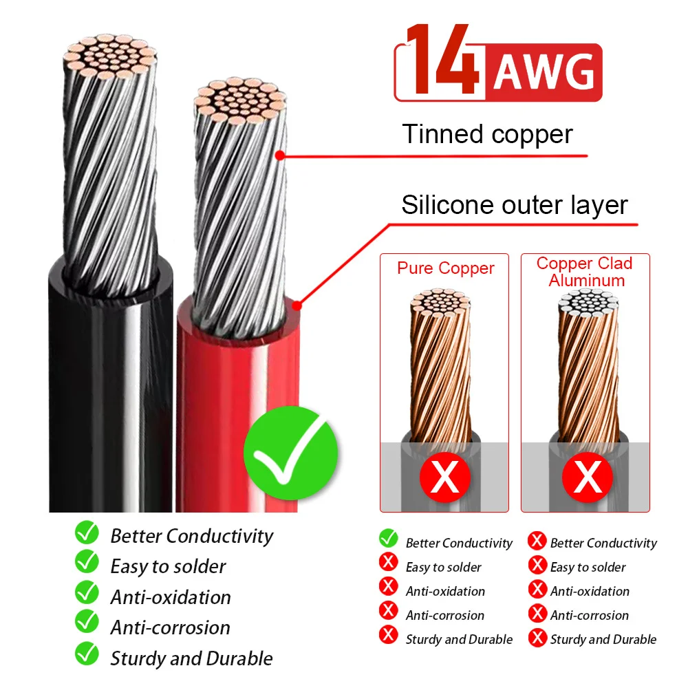 XT60 male or female battery connector plug, 14AWG silicone tinned copper wire, wire tail tinned for easy connection