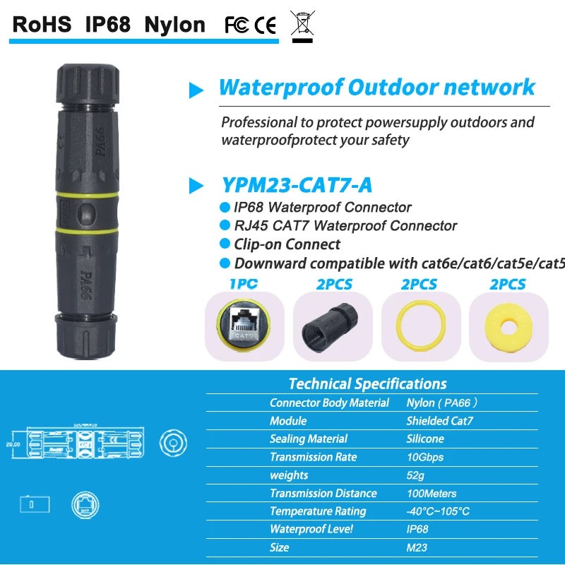 ระดับ IP68 (กันน้ําและกันฝุ่น) สําหรับการใช้งานในสภาพกลางแจ้ง – ออกแบบมาเพื่อปกป้องการเชื่อมต่ออีเธอร์เน็ต RJ45 ของคุณเหมาะสําหรับการแสดงแสงสว่างในช่วงวันหยุดภายนอก กล้องรักษาความปลอดภัย IP การใช้งานทางอุตสาหกรรม