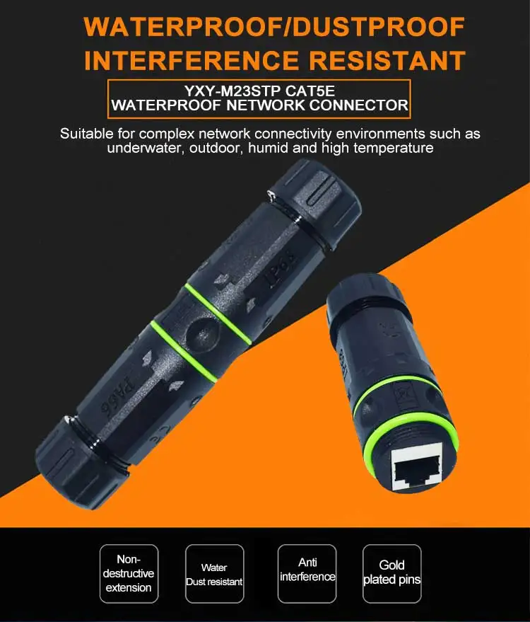 YXY เครือข่าย rj45 Connector IP68 กันน้ํา CAT5E/CAT6/CAT6A M23 สายเคเบิลเครือข่าย Ethernet Extenders rj45 แผง mount สําหรับกลางแจ้ง จาก 2 รีวิว