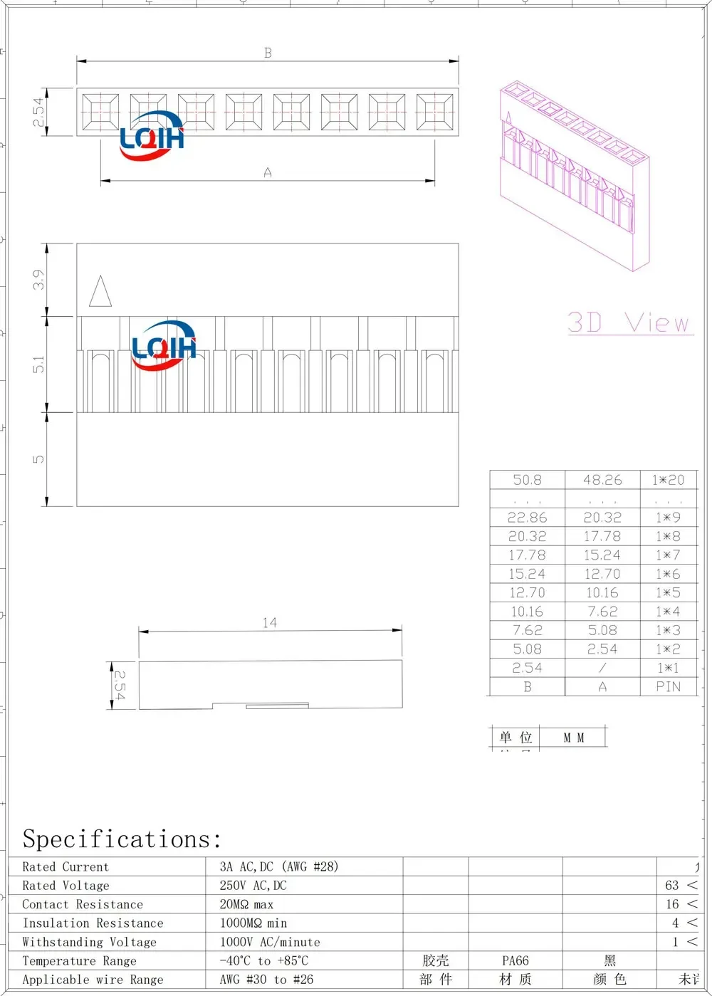 ระยะห่าง 3.0 มม. Mx 3.0 มม. สีดําคู่แถวชาย/หญิง/ตรง/เข็มโค้ง /Terminal ชุด Plug-in ซ็อกเก็ต