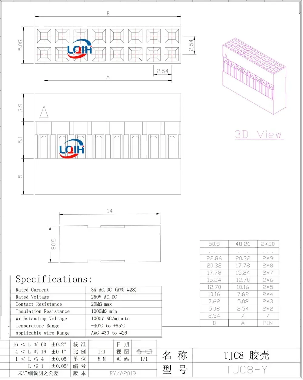 2.54 มม.Dupont Connector 1 2*2/3/4/5/6/7/8/9/10/20P คู่แถว Connector Shell ปลั๊กจัมเปอร์สาย Pin Header เทอร์มินัล