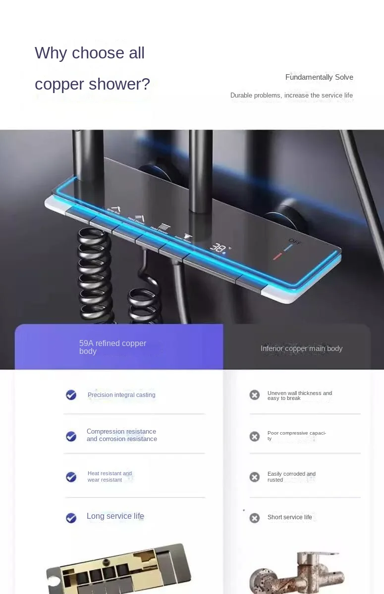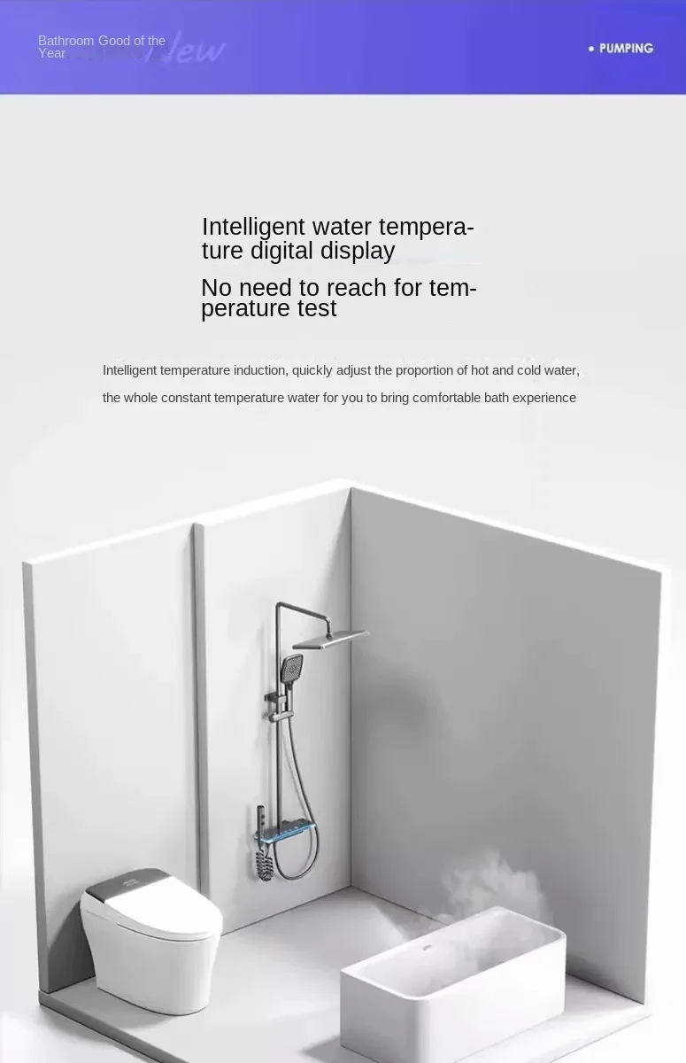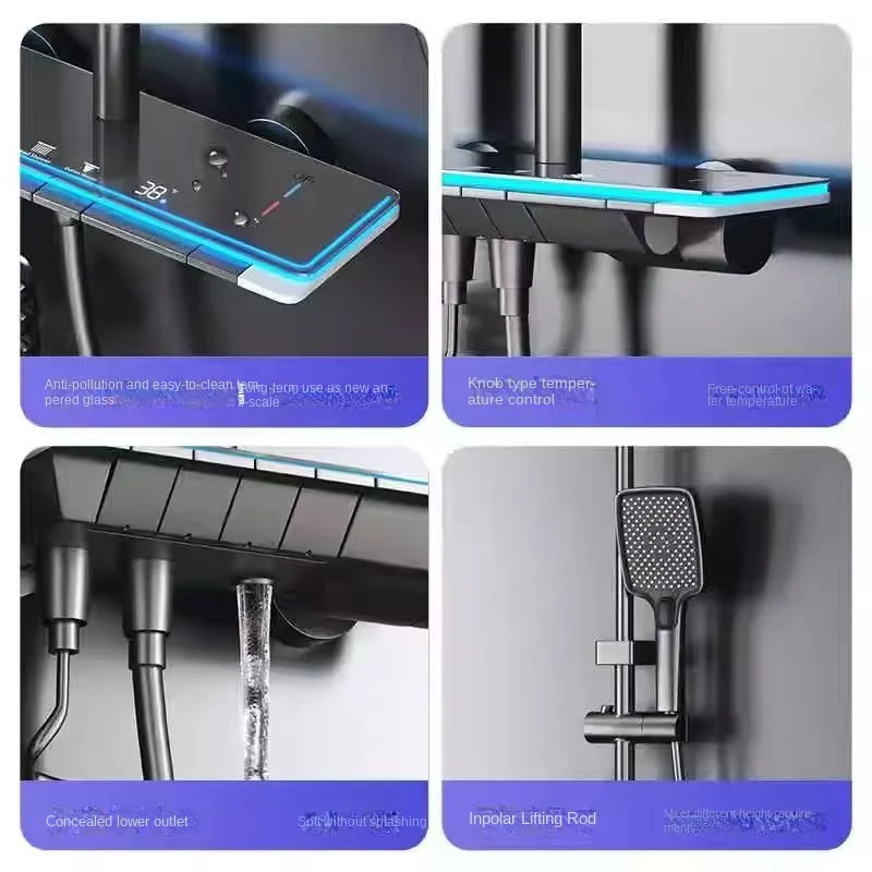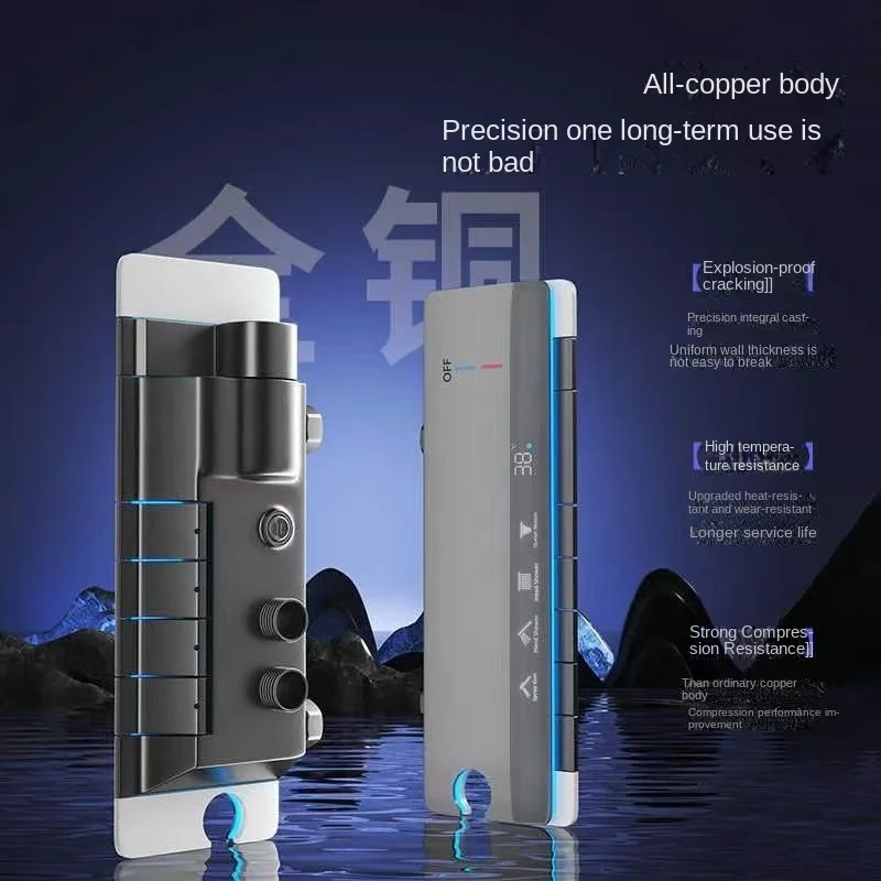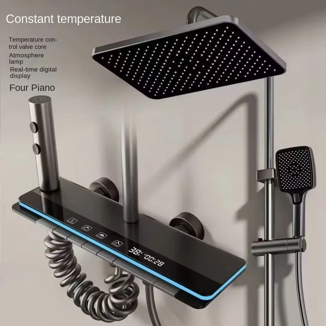ชุดฝักบัวดิจิตอลอุณหภูมิคงที่อัจฉริยะ แรงดันอากาศ ท่อน้ำทองแดงเต็มรูปแบบพร้อมช่องจ่ายน้ำ 4 ฟังก์ชั่น