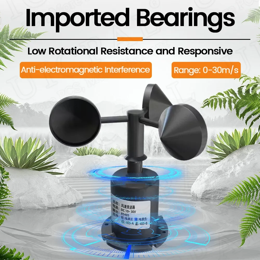 เซ็นเซอร์ทิศทางความเร็วลม3ถ้วยสถานีสภาพอากาศกลางแจ้งโพลีคาร์บอน30เมตร/วินาทีเอาต์พุตเซ็นเซอร์วัดความเร็ว4-20MA RS485 0-5V 0-10V