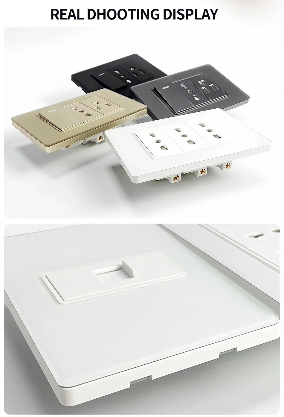 T&I Elegant 118 เต้ารับสวิตช์ผนัง มาตรฐานสหรัฐฯ เครื่องชาร์จ USB พร้อม Type-C การออกแบบแผงกระจก