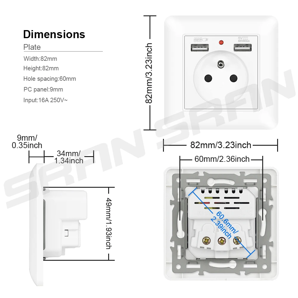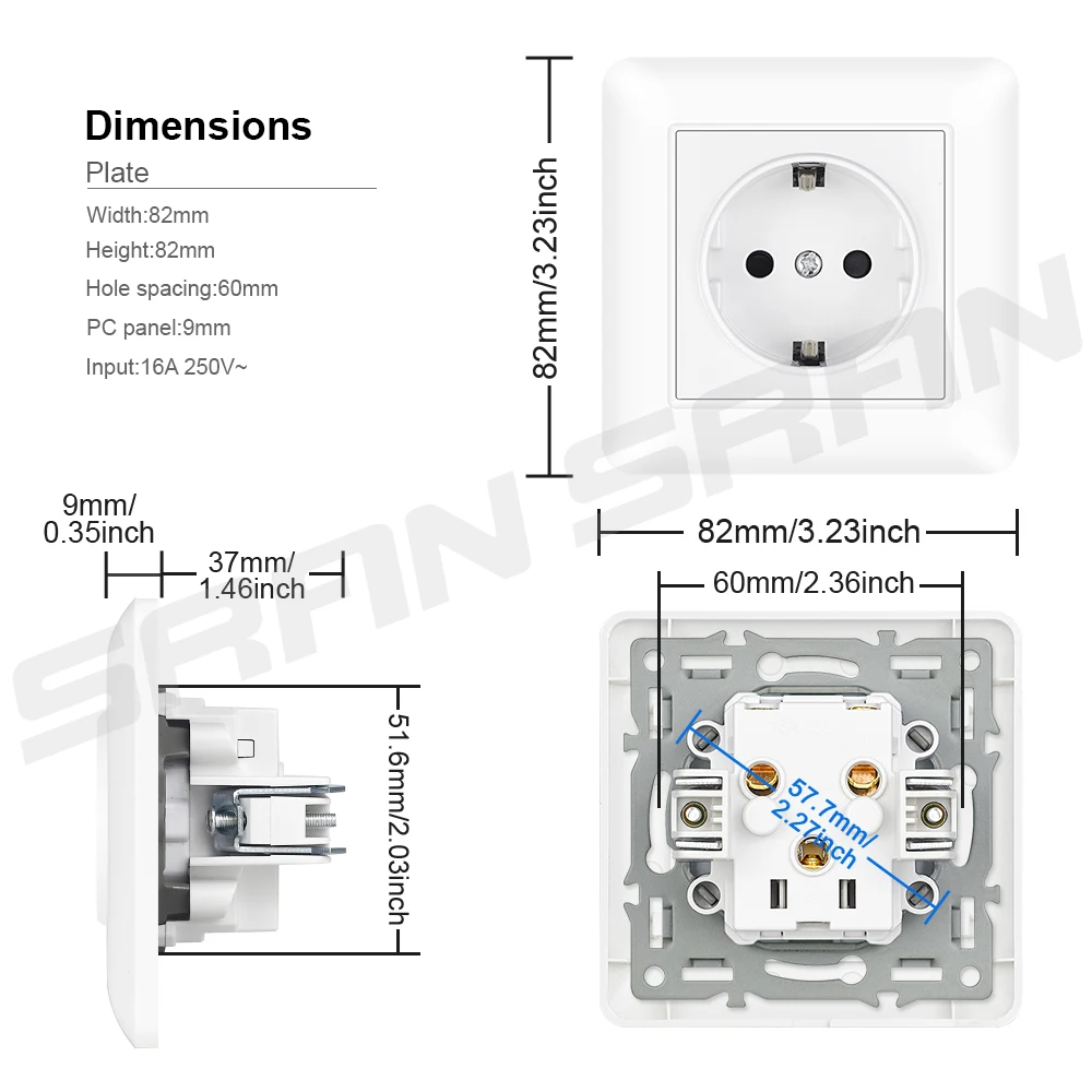 SRAN Eu ซ็อกเก็ตและสวิทช์ 220V 16A สีขาวสารหน่วงไฟ PC แผงปลั๊กผนัง eu มาตรฐานสําหรับ home