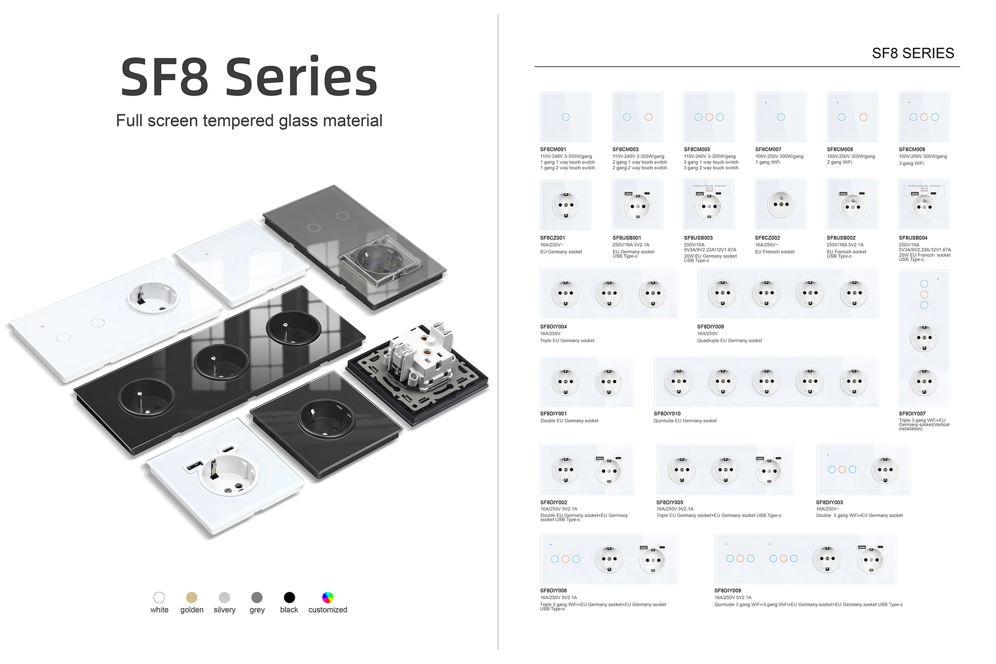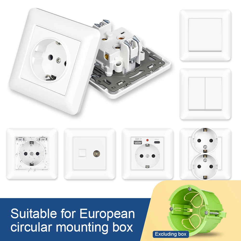 BSEED 1/2 Gang Mechanical สวิทช์ไฟ EU ซ็อกเก็ต USB Type-c พอร์ตทีวี/ST/CAT6 Dimmer ฟังก์ชั่น DIY ชิ้นส่วนกรอบพลาสติก