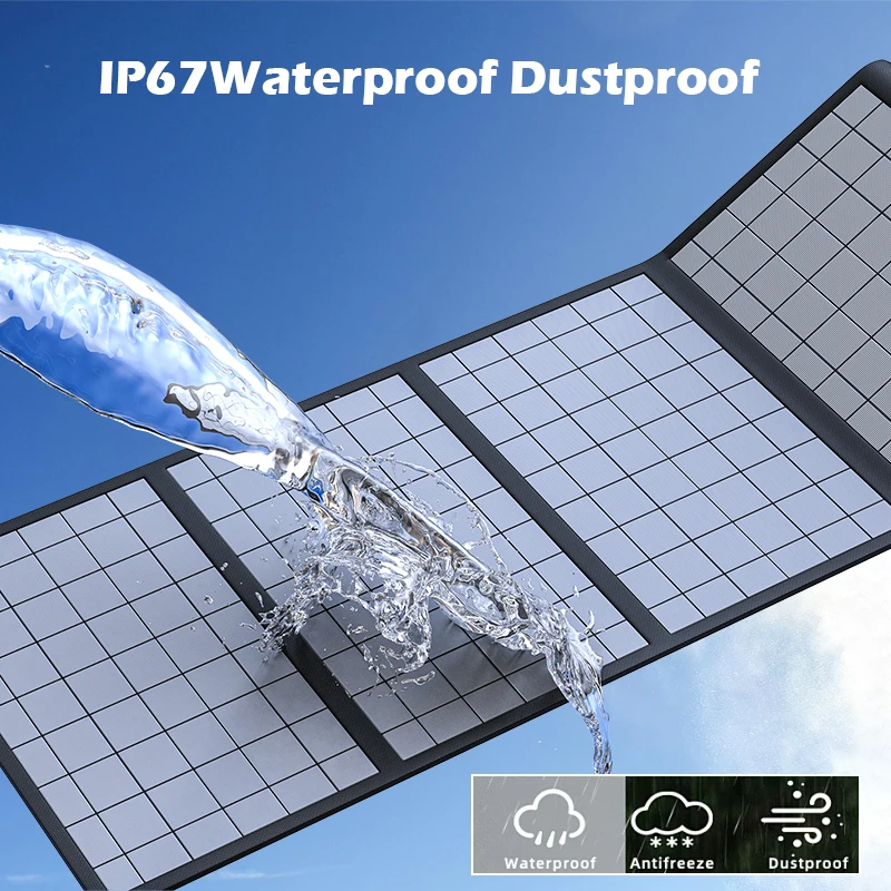 เครื่องชาร์จพลังงานแสงอาทิตย์ 100W พร้อมพอร์ต USB คู่ แผงโซลาร์เซลล์กันน้ําและพกพาได้สําหรับการตั้งแคมป์กลางแจ้ง เดินป่า อุปกรณ์ฉุกเฉิน
