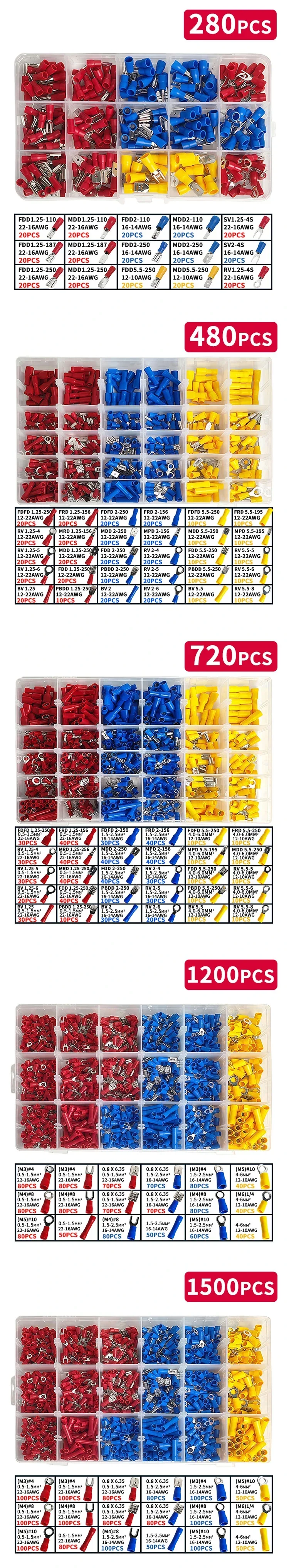 280/480/720/1200pcs Cold Pressed Terminal Kit-ฉนวน Quick Connect Spade/แหวน/ส้อม CRIMP Connectors สําหรับสายไฟรถยนต์