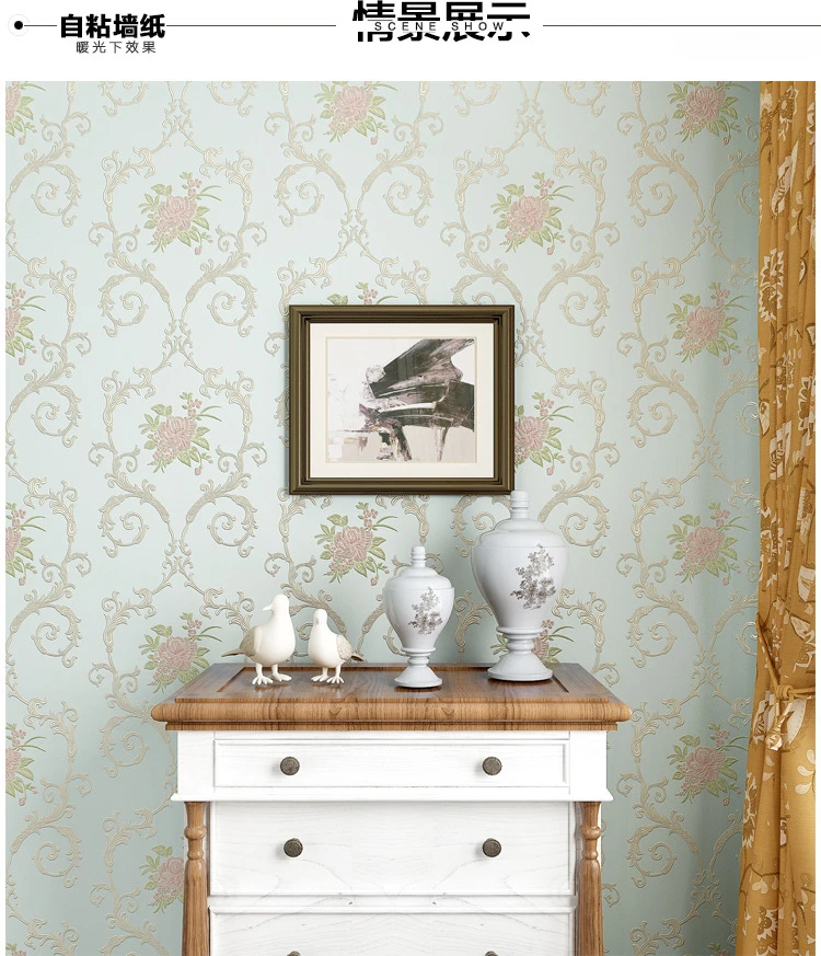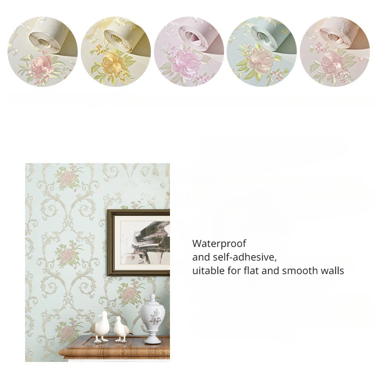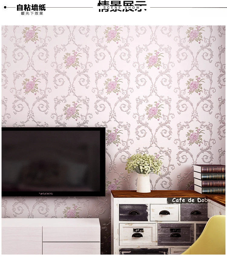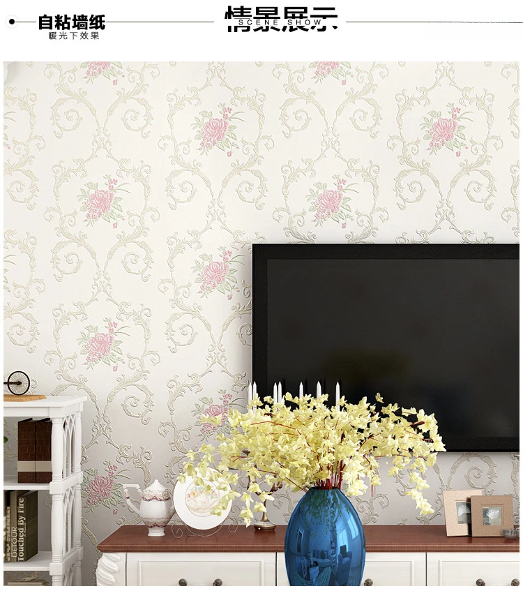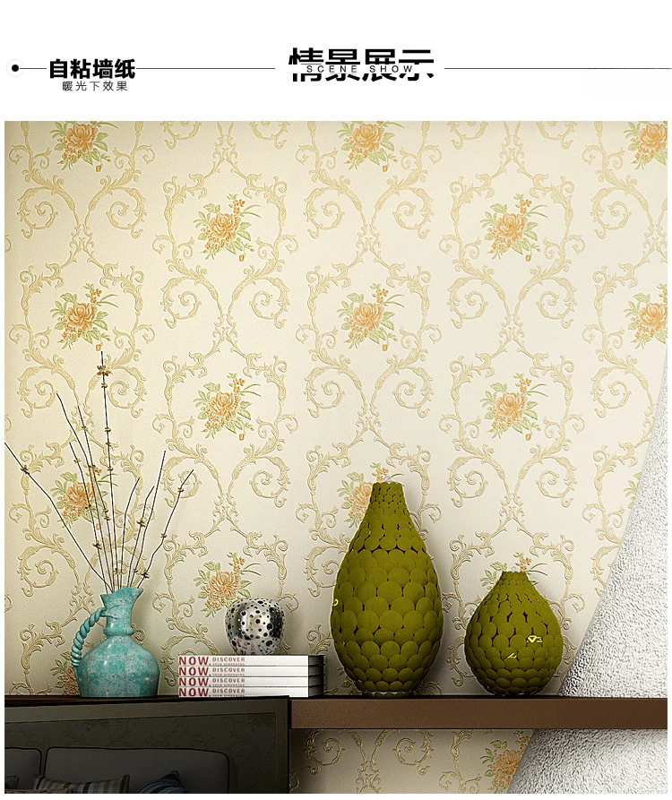 สติกเกอร์ติดผนังแบบยุโรป3D มีกาวในตัวสำหรับดอกไม้ติดสวนการตกแต่งบ้าน kertas dinding kamar ให้ความอบอุ่นในห้องนอนห้องนั่งเล่นหรูหรา