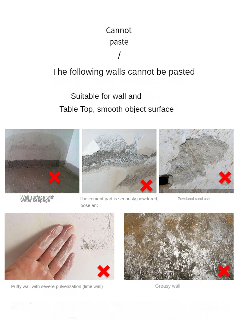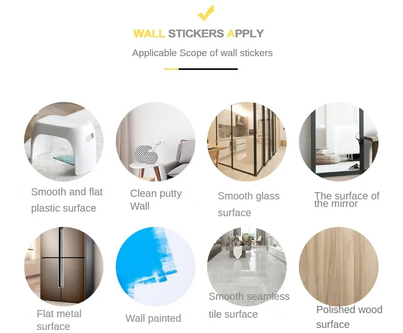 ก่อนอื่นสติ๊กเกอร์แปะผนังเหมาะสำหรับพื้นผิวที่เรียบ คุณจำเป็นต้องทำความสะอาดพื้นผิวและตรวจสอบให้แน่ใจว่าพื้นผิวเรียบและแห้งและวางสติ๊กเกอร์แปะผนังตามขนาดที่เหมาะสม สติ๊กเกอร์แปะผนังมีกาวในตัวและจะต้องลอกและติด เราขอแนะนำให้ตัดวอลล์เปเปอร์เพื่อให้มันยาวกว่าขนาดวัตถุ1นิ้วจากนั้นเพื่อให้แน่ใจว่าการวางเรียบโปรดลอกกระดาษด้านหลังออกขณะวางโปรดอย่าลอกออกทั้งหมดในครั้งเดียว คุณสามารถวางพร้อมกับ2คนซึ่งสามารถทำให้การติดตั้งง่ายขึ้น ในที่สุดหากมีฟองอากาศคุณสามารถใช้ผ้าเพื่อใช้แรงกดจากตรงกลางไปที่ขอบเพื่อกำจัดริ้วรอยและฟองอากาศหรือคุณสามารถเจาะฟองอากาศเพื่อบีบอากาศออกได้ แน่นอนคุณสามารถเปลี่ยนตำแหน่งสติ๊กเกอร์แปะผนังได้อย่างช้าๆ
