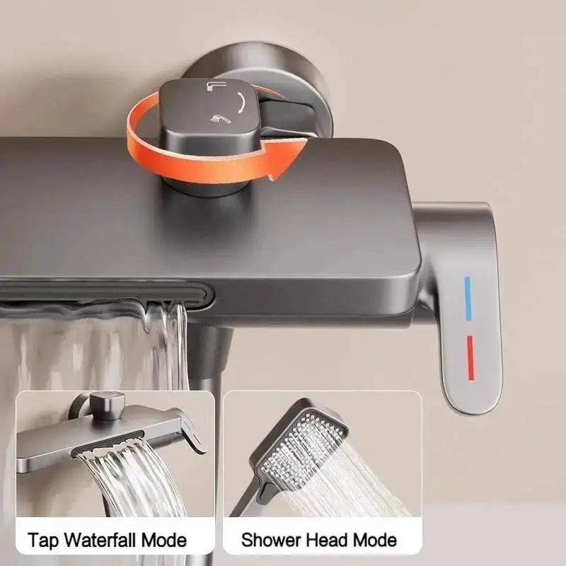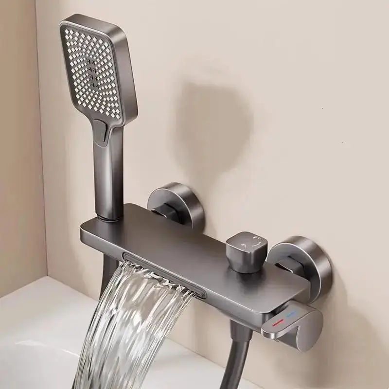 ห้องน้ําน้ําตกอ่างอาบน้ําก๊อกน้ําสามเกียร์มือถือติดผนังร้อนและเย็น TAP ชุดฝักบัว