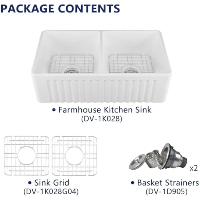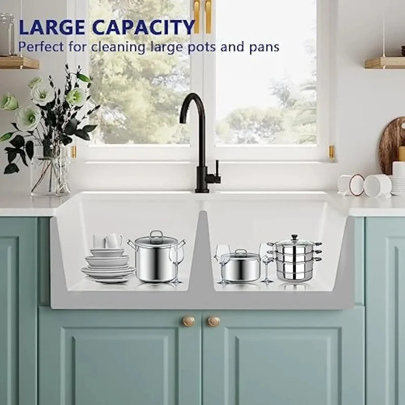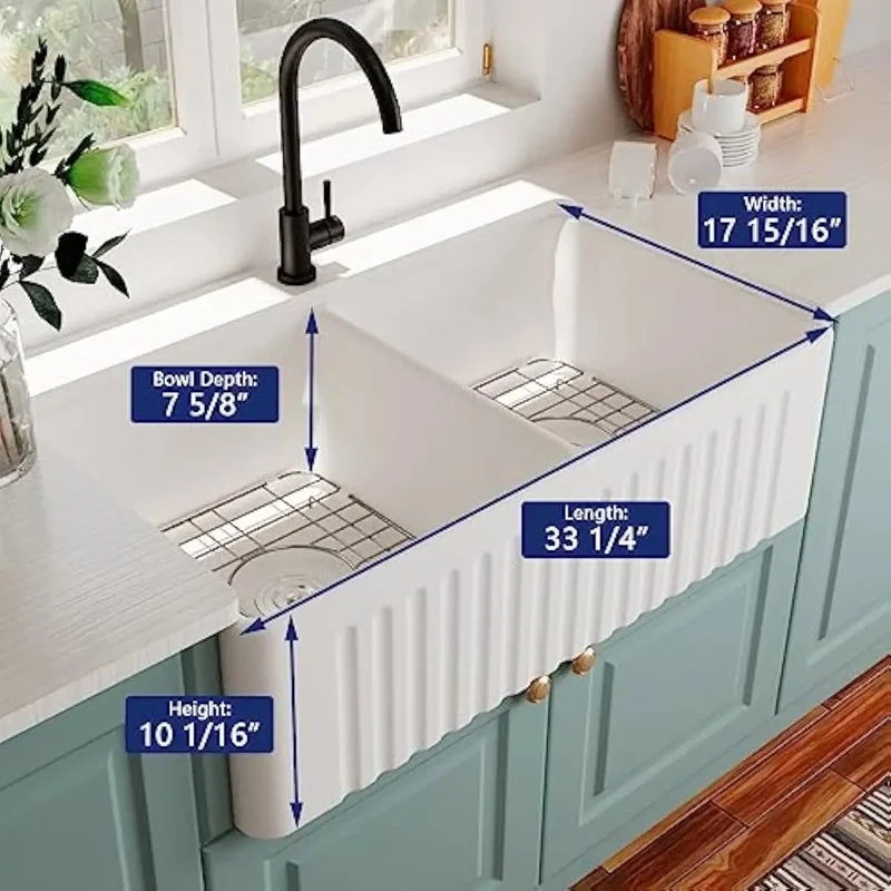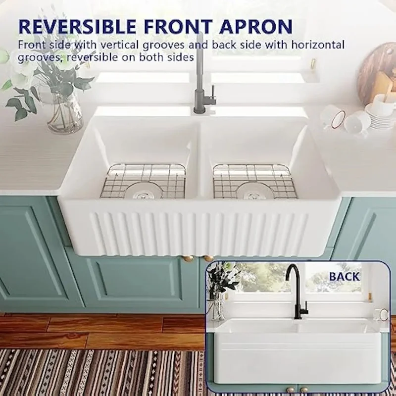 เซรามิคสีขาวชามคู่บ้านไร่อ่างล้างจานผ้ากันเปื้อนด้านหน้า Fireclay อ่างล้างจานฟาร์ม