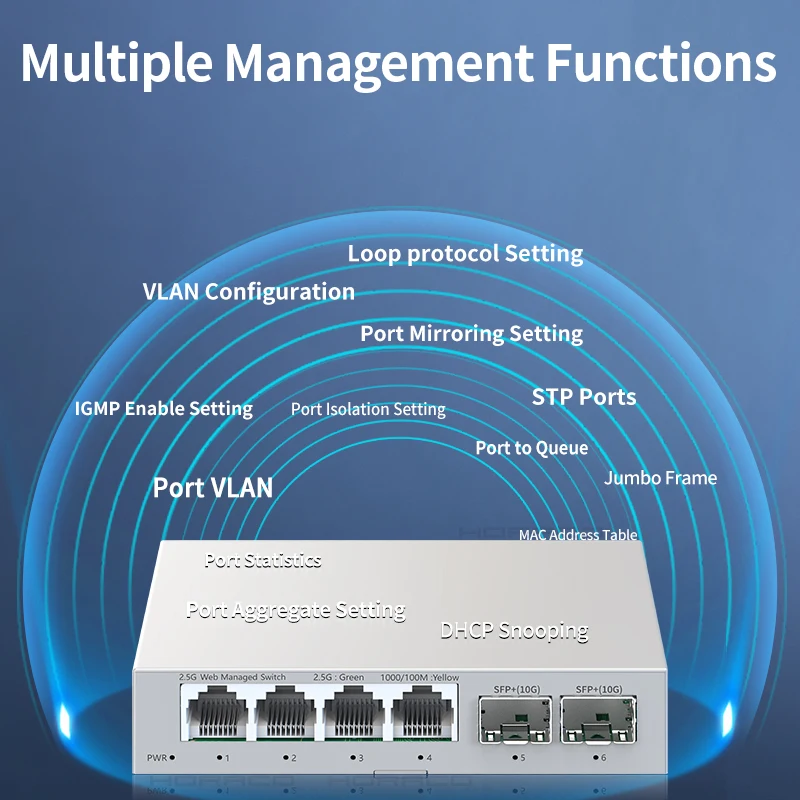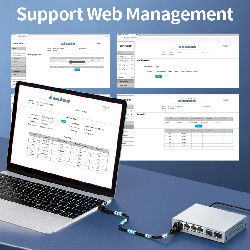 HORACO 2.5GbE สมาร์ท Managed Switch 4 พอร์ต RJ45 2500Mbps Web Managed Ethernet เครือข่าย 2 พอร์ต 10G SFP + สล็อต Home Lab Switch