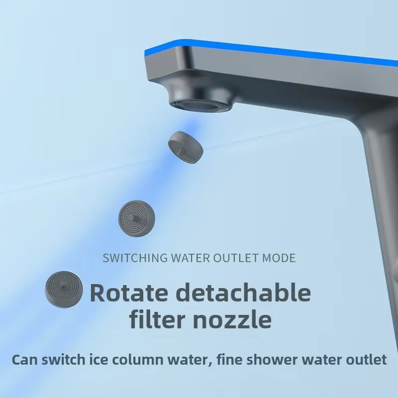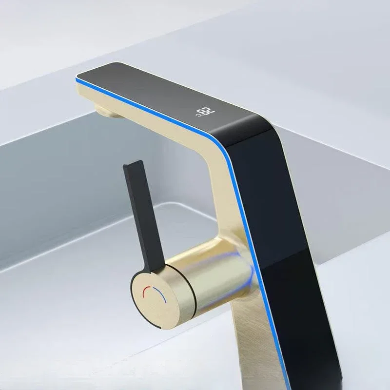 ก๊อกน้ำอ่างล้างหน้าแบบดิจิตอลพร้อมจอแสดงอุณหภูมิ LED หัวฉีดแบบไหลลง น้ำร้อนน้ำเย็น ก๊อกผสมอ่างล้างหน้าในห้องน้ำ หัวฉีดน้ำแบบปรับมุมได้