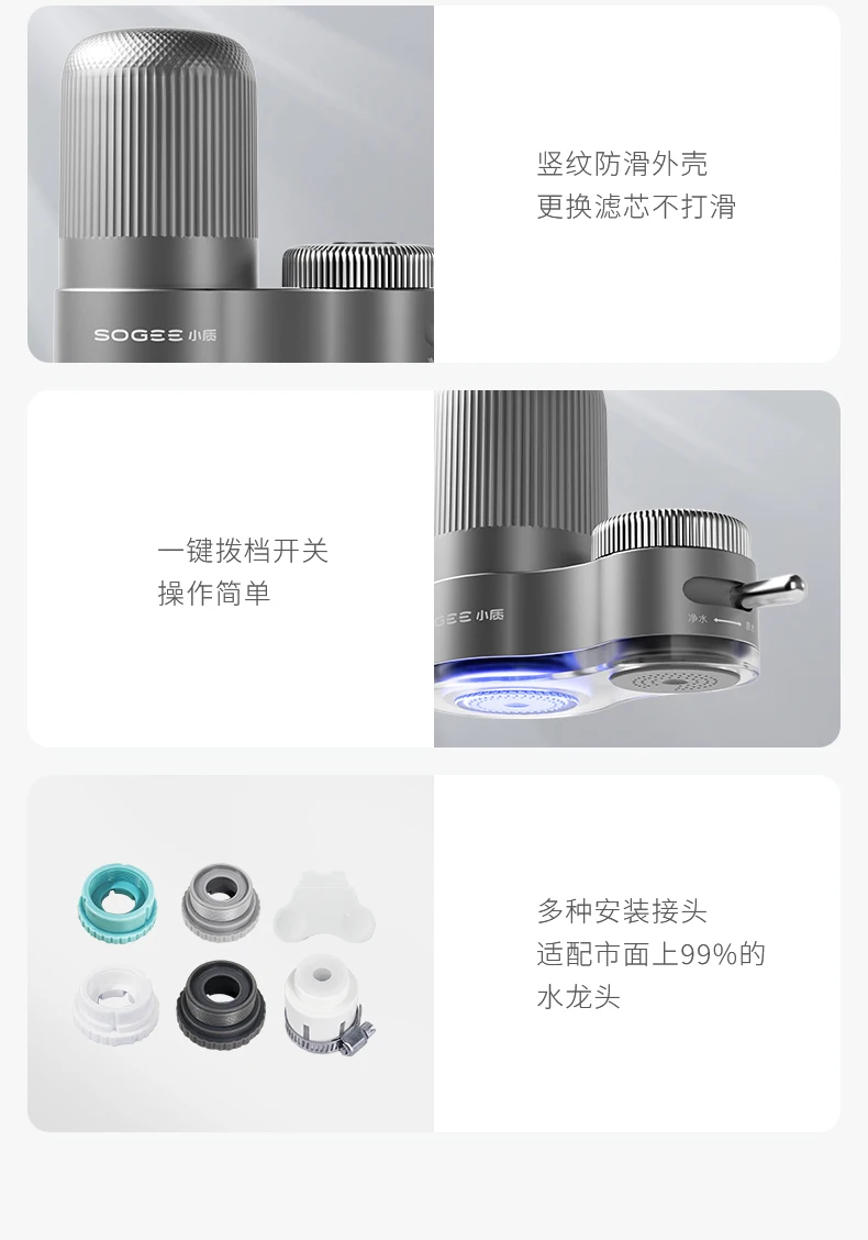 Xiaozhi sogee pemurni Air keran ขจัดคราบและขจัดคราบคลอรีนเครื่องกรองเครื่องกรองน้ำสำหรับใช้ในครัวเรือน