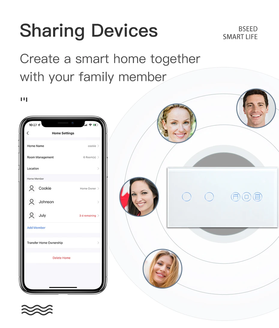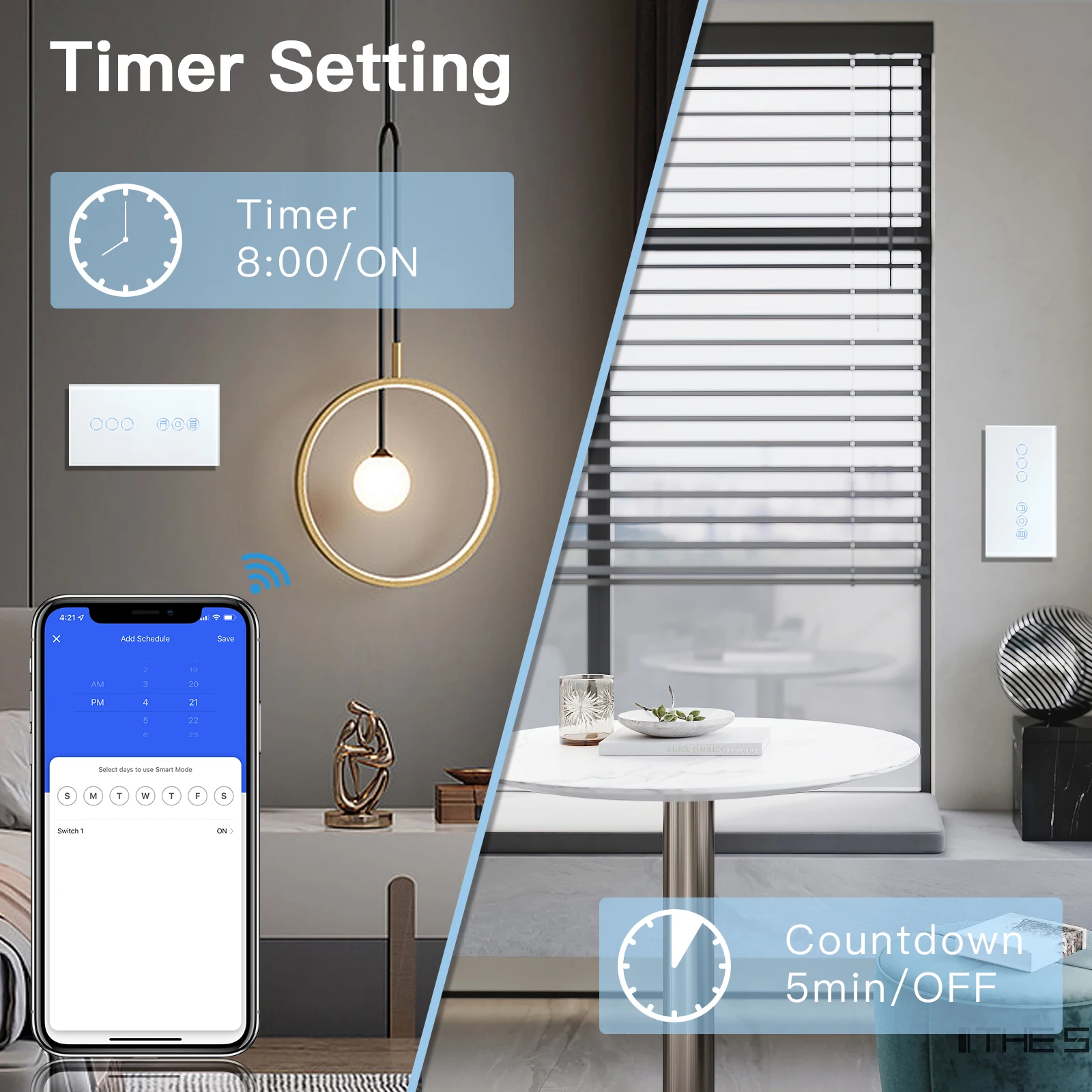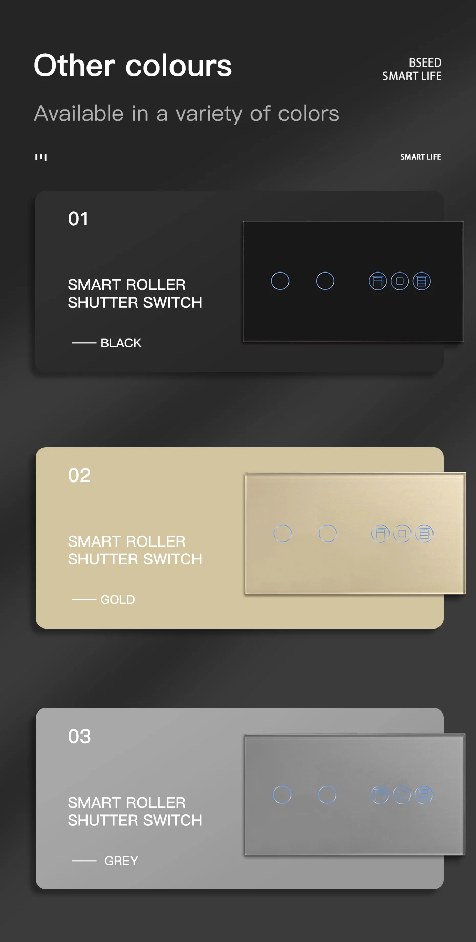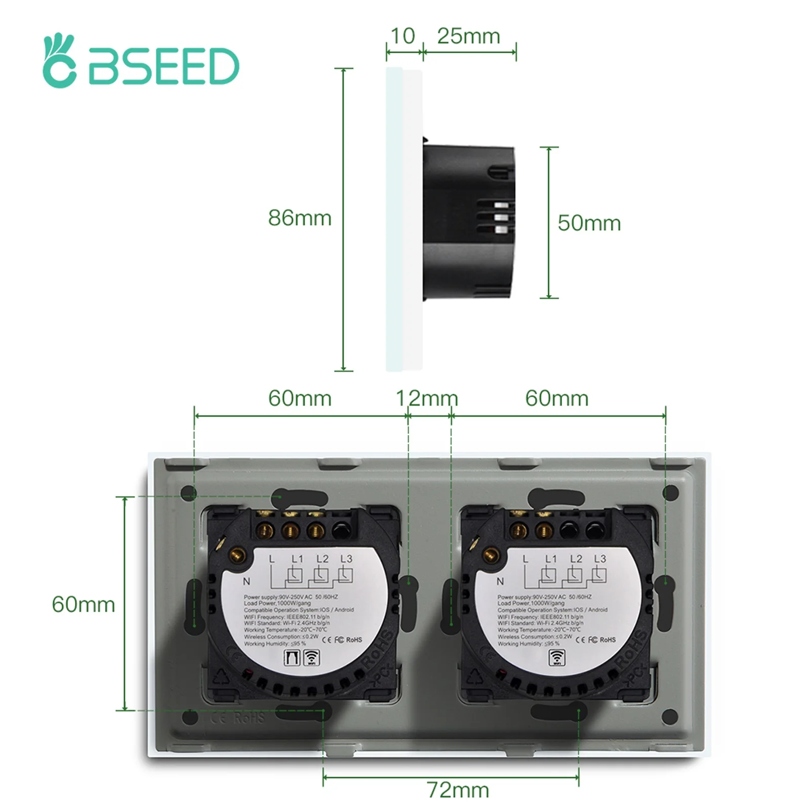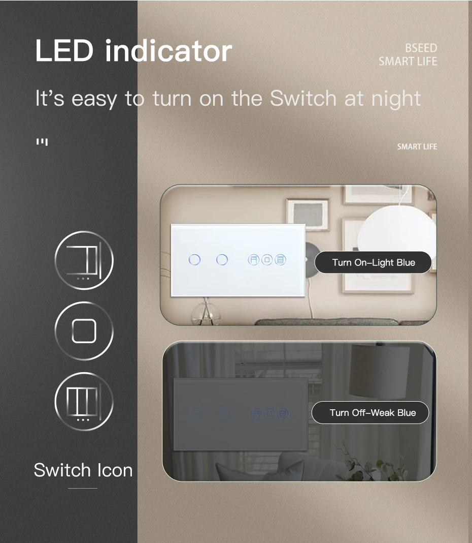 Bseed สวิตช์ชัตเตอร์ระบบสัมผัสอัจฉริยะ, สวิตช์ชัตเตอร์ไร้สายอัจฉริยะแบบสัมผัส1/2/3แก๊งค์1/สวิตช์ไฟระบบสัมผัส2/3ทาง Google Alexa