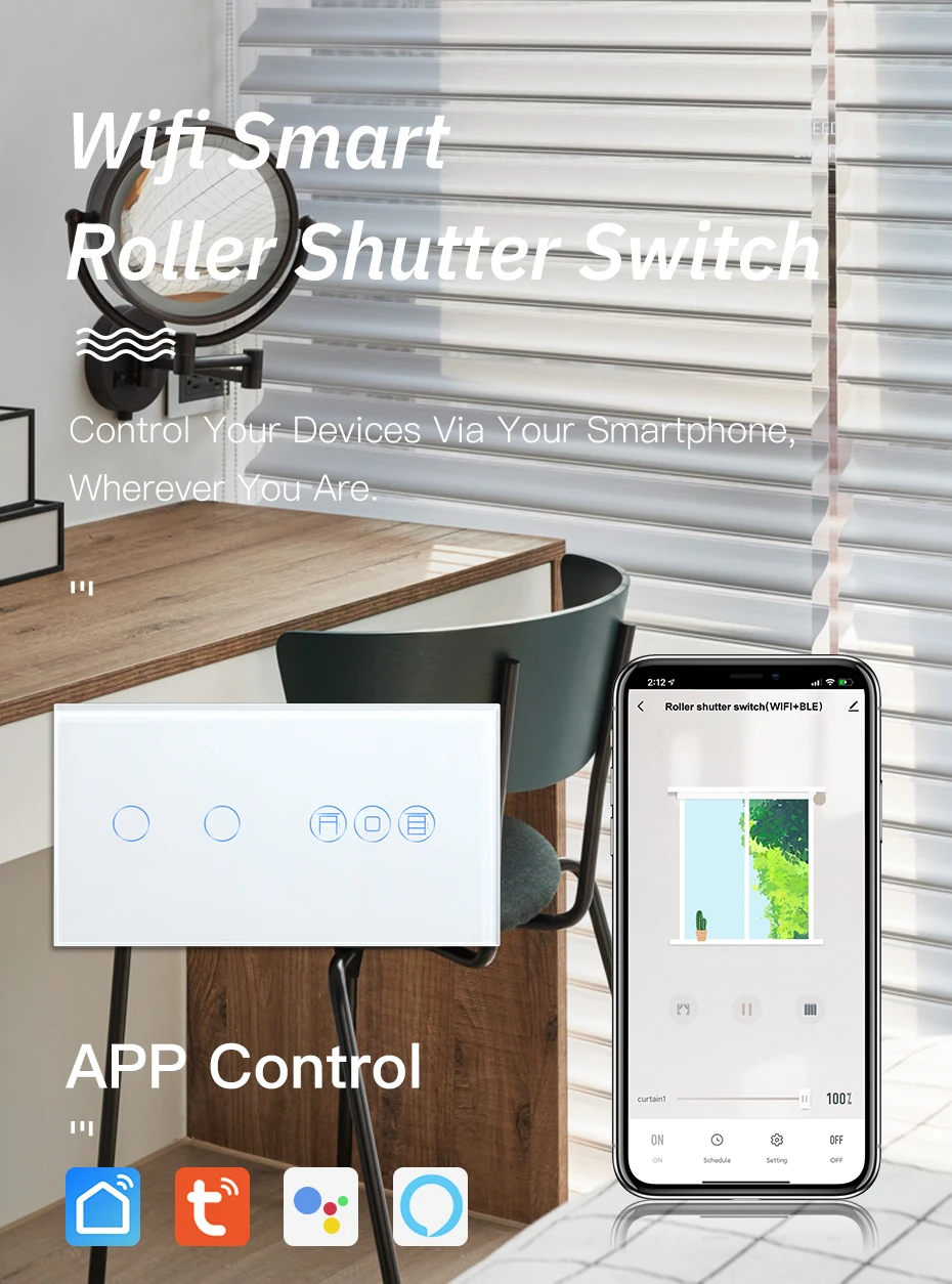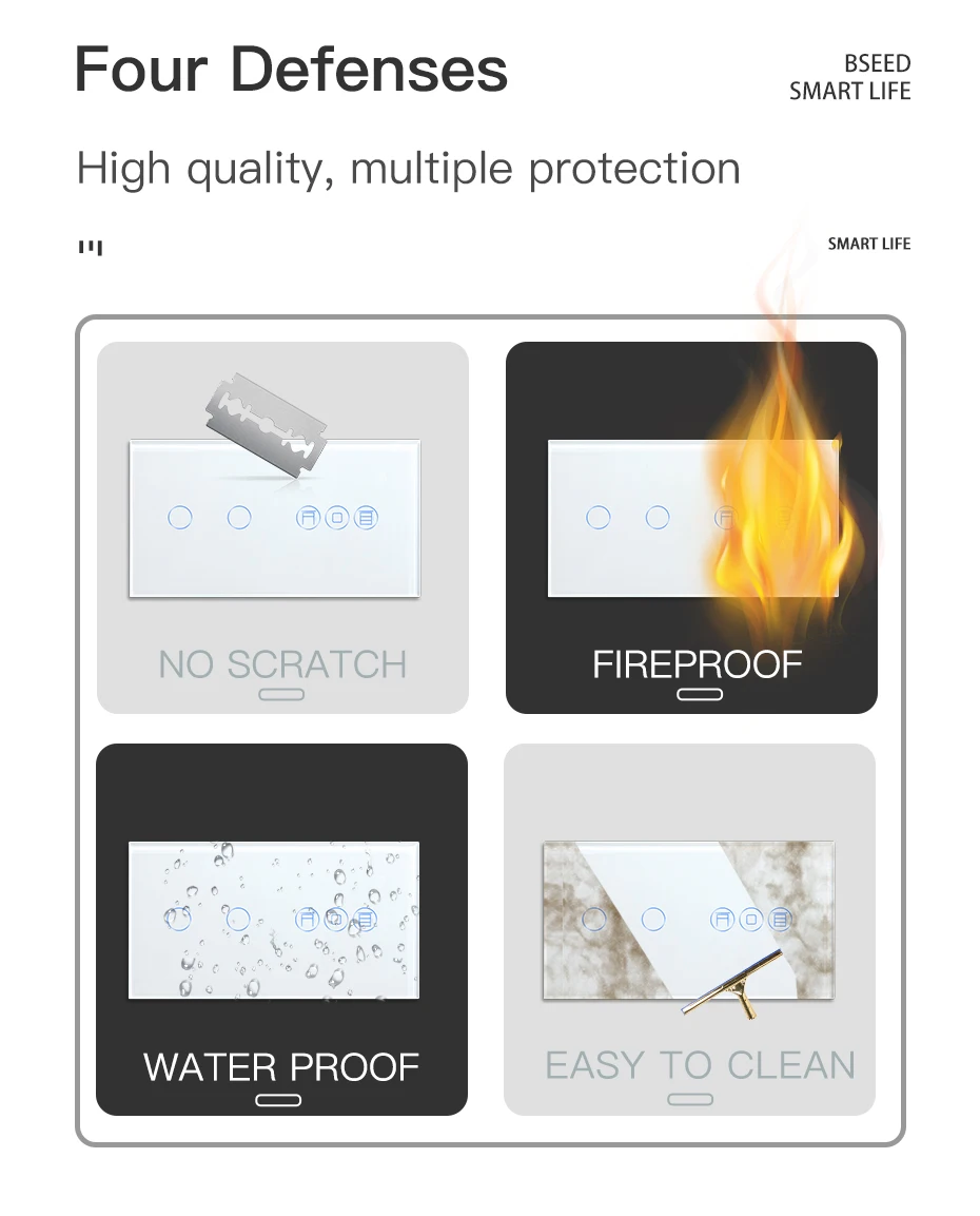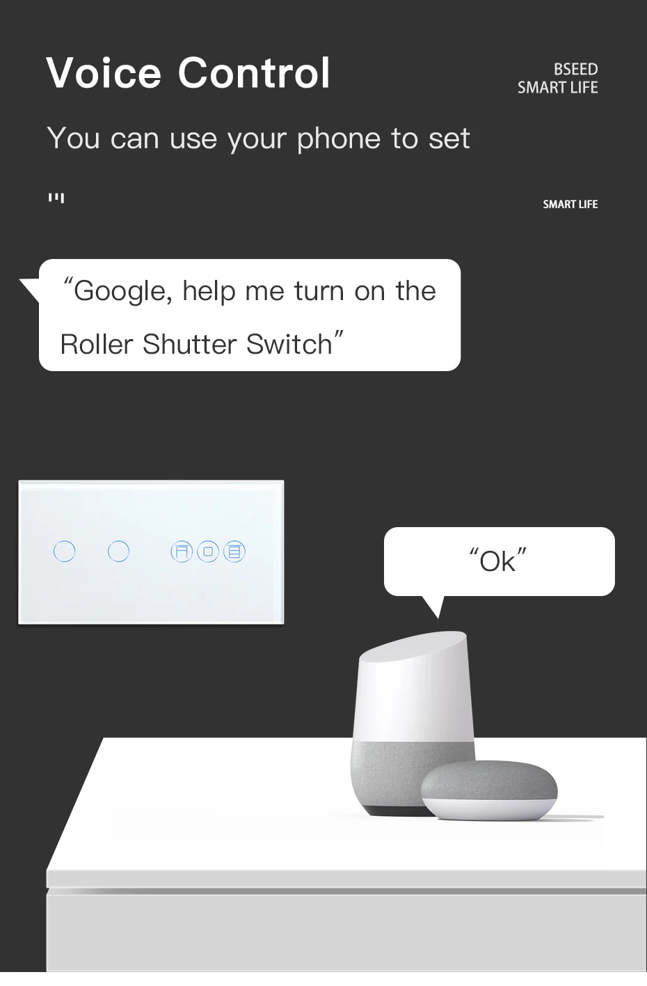 Bseed Wifi ชัตเตอร์สวิทช์สมาร์ท Touch Roller Blind สวิทช์สมาร์ท1/2/3Gang 1/2/3 Way สวิตช์ Light Touch App ควบคุม Google Alexa