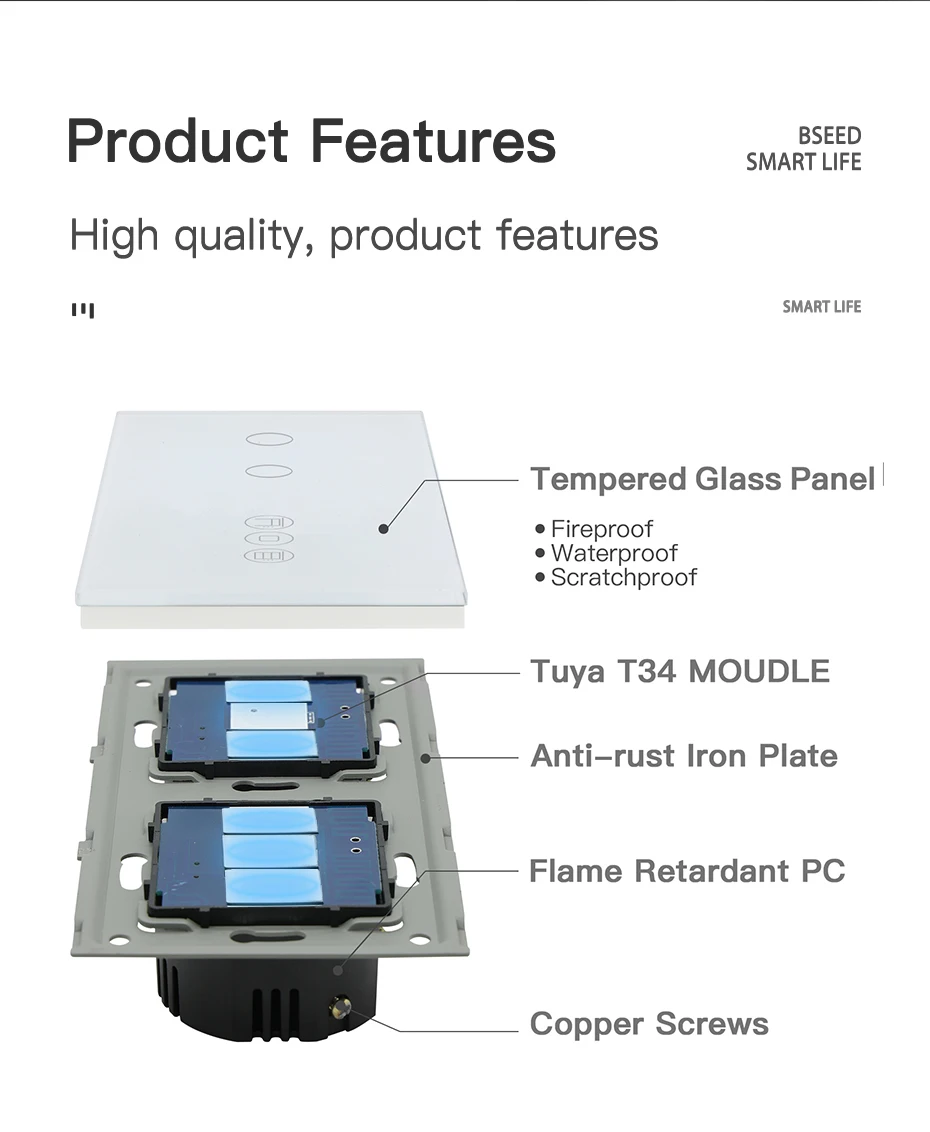 Glass Panel & Iron Plate & Plastic Switch Module |