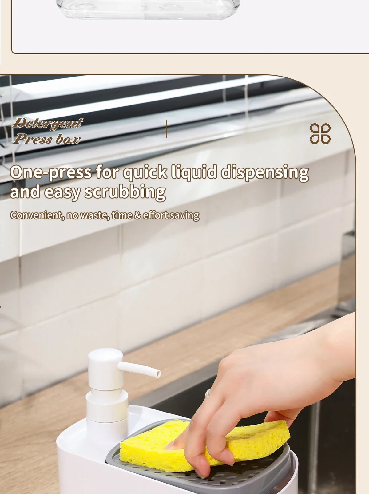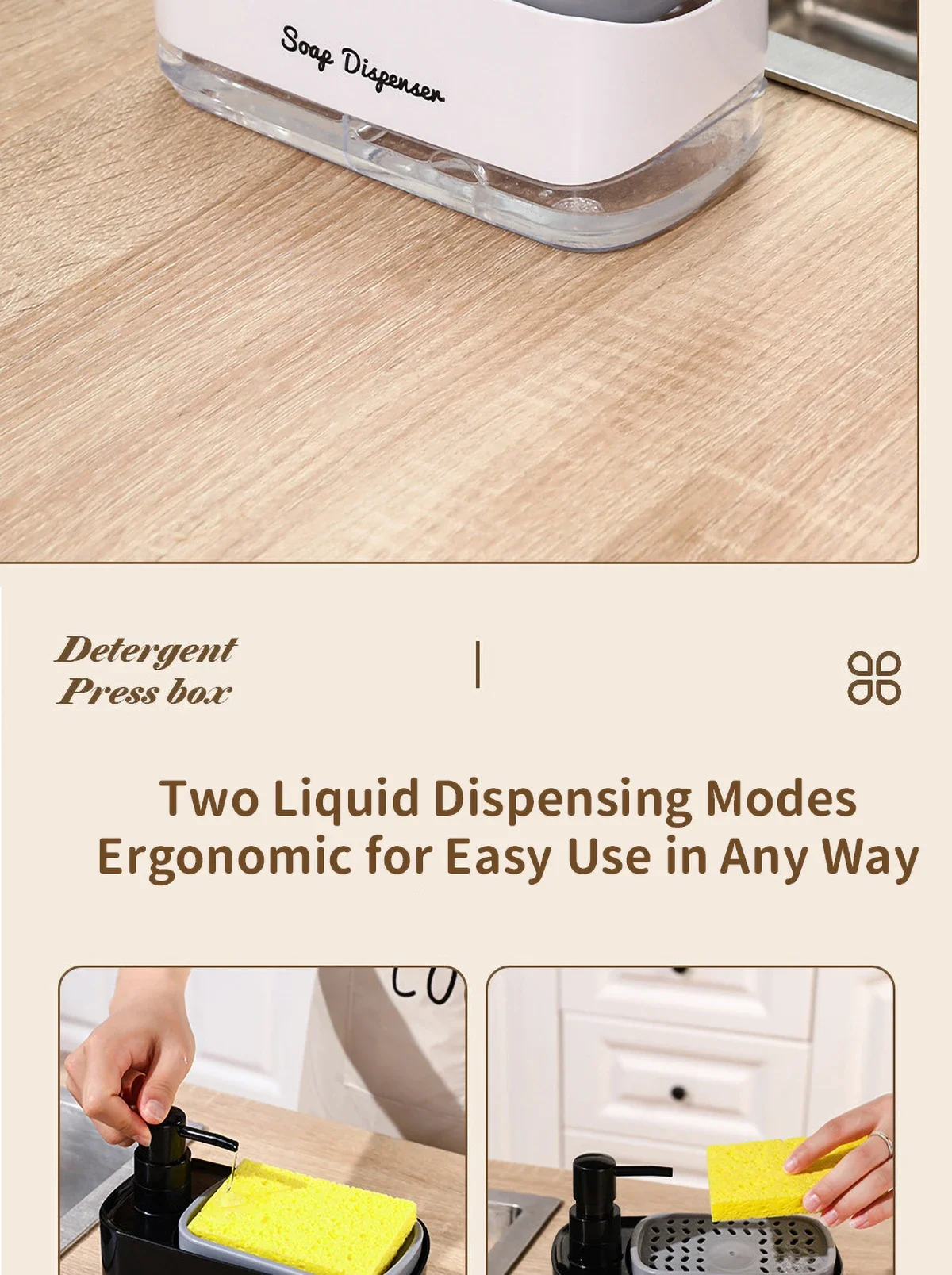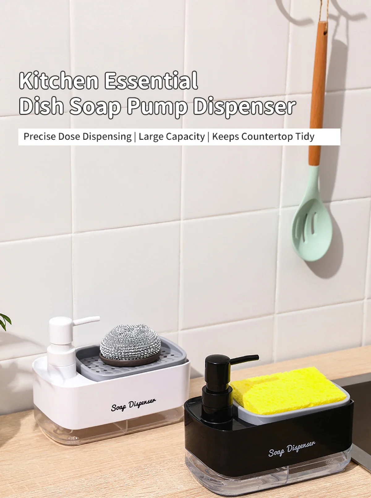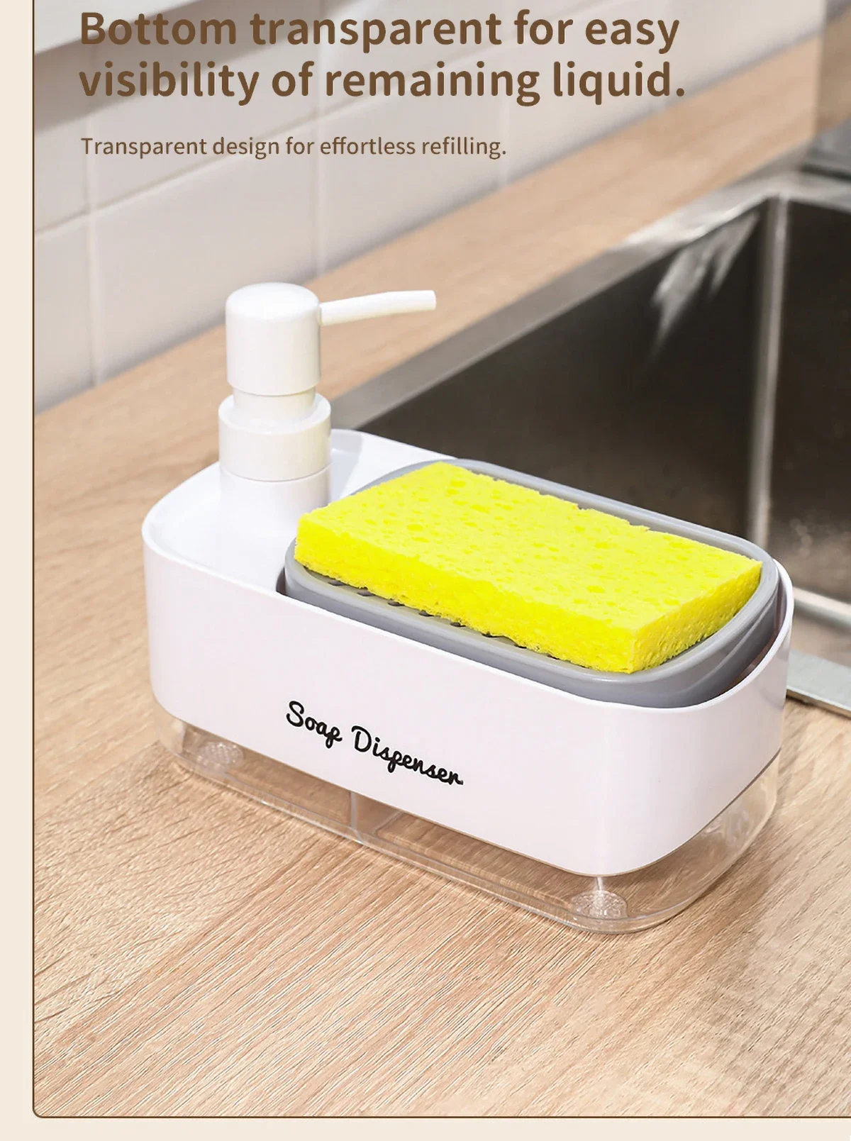 ชุดจ่ายสบู่ล้างมือและจานพร้อมที่ใส่ฟองน้ำ 2-in-1 สำหรับอ่างล้างจานในครัว