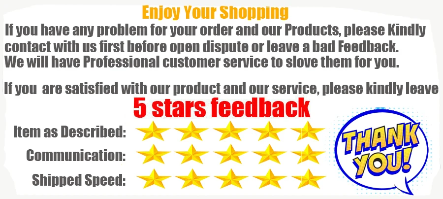เมื่อคุณได้รับพัสดุของคุณคุณสามารถตรวจสอบได้ หากมีปัญหาใดๆกับพวกเขาหรือต้องการบริการหลังการขายโปรดฝากข้อความไว้ก่อนและคุณสามารถฝากข้อความแบบทันทีไว้ได้ เราสามารถติดต่อคุณเมื่อเราอ่านมัน