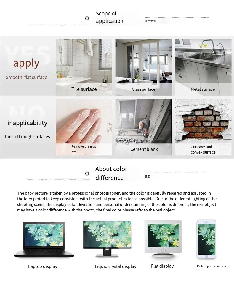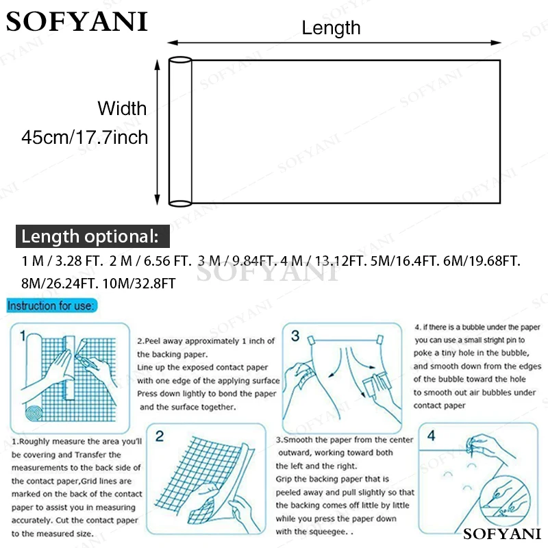 Function : Furniture renovation, decoration, waterproof, dustproof, installed surface can be cleaned with water directly.