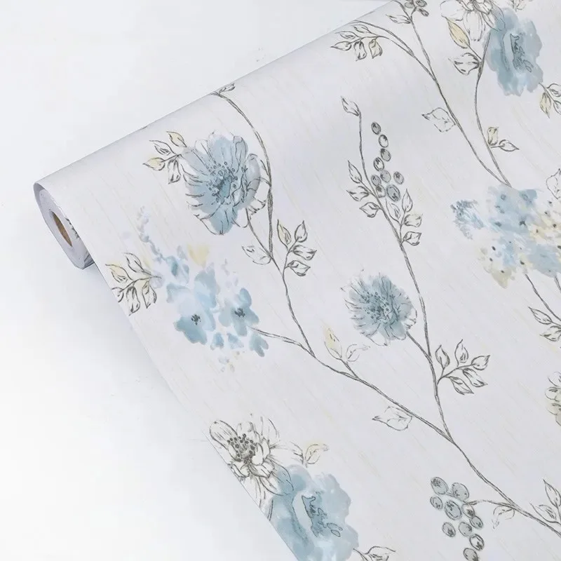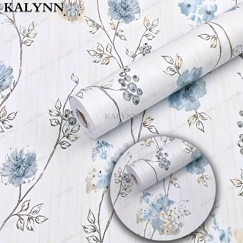 วอลล์เปเปอร์ดอกไม้สีฟ้าย้อนยุค – กระดาษติดต่อกาวในตัววอลล์เปเปอร์กันน้ําที่ถอดออกได้ DIY เหมาะสําหรับตกแต่งเฟอร์นิเจอร์