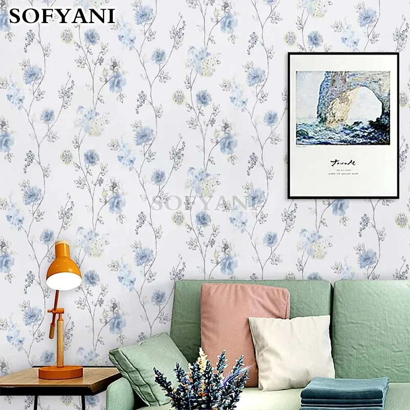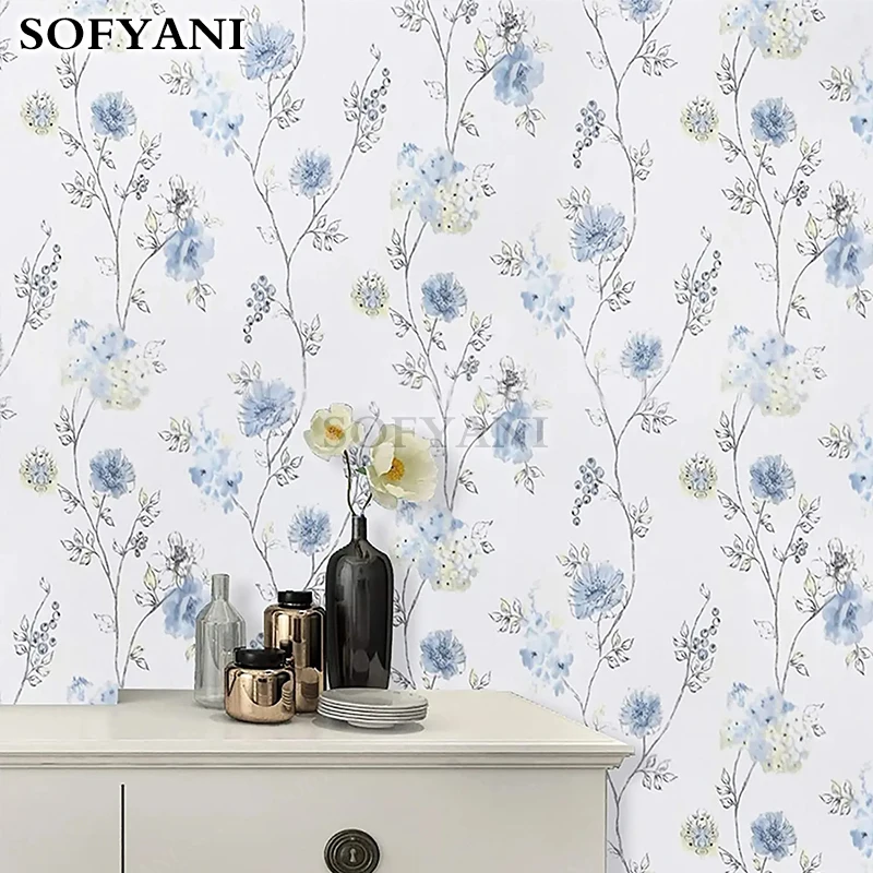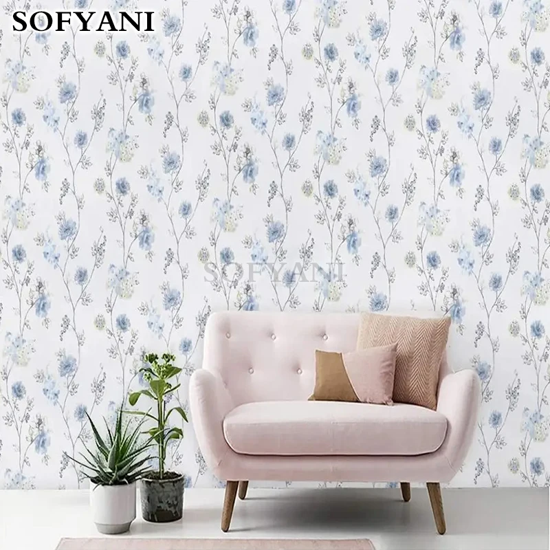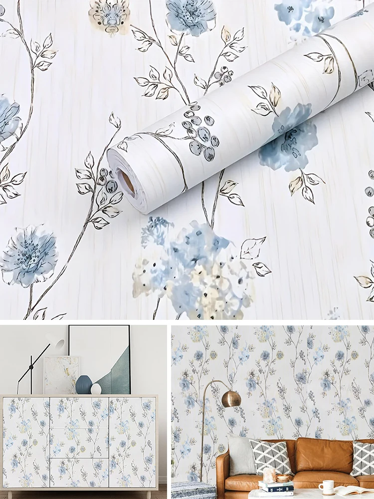 วอลล์เปเปอร์ดอกไม้สีฟ้าย้อนยุค – กระดาษติดต่อกาวในตัววอลล์เปเปอร์กันน้ําที่ถอดออกได้ DIY เหมาะสําหรับตกแต่งเฟอร์นิเจอร์