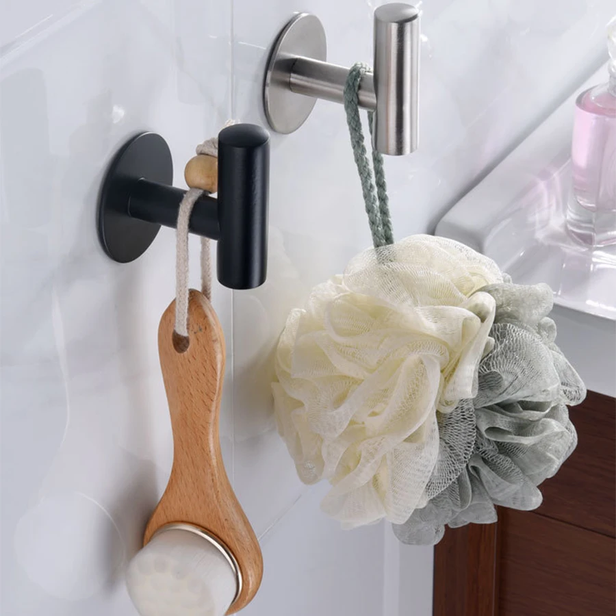 ที่แขวนติดผนังมีกาว1/2ชิ้นตะขอติดผนังสแตนเลสตะขอแขวนผ้าเช็ดตัวกางเกงเสื้อโค้ทที่เก็บอุปกรณ์ในครัวห้องน้ำ