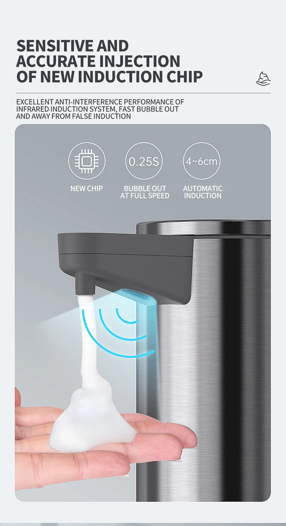สแตนเลสสตีลอินฟราเรดอัตโนมัติเครื่องจ่ายสบู่โฟมอัจฉริยะอัตโนมัติเครื่องมือสําหรับห้องครัวห้องน้ํา