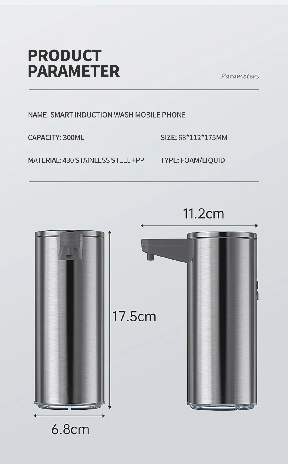 สแตนเลสสตีลอินฟราเรดอัตโนมัติเครื่องจ่ายสบู่โฟมอัจฉริยะอัตโนมัติเครื่องมือสําหรับห้องครัวห้องน้ํา จาก 2 รีวิว