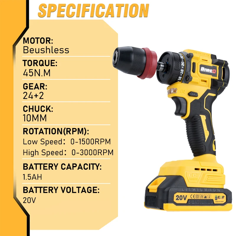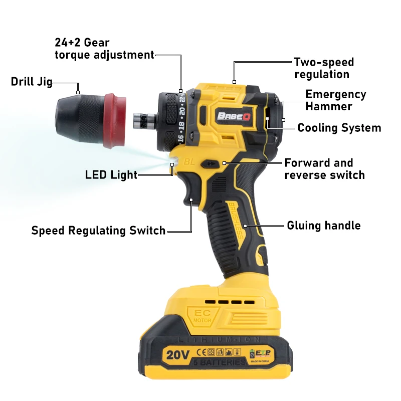 10MM Brushless Electric Drill Set Screwdriver Hand Drill 24+2 Torque Cordless Drill Lithium Battery Home DIY Drilling Machine