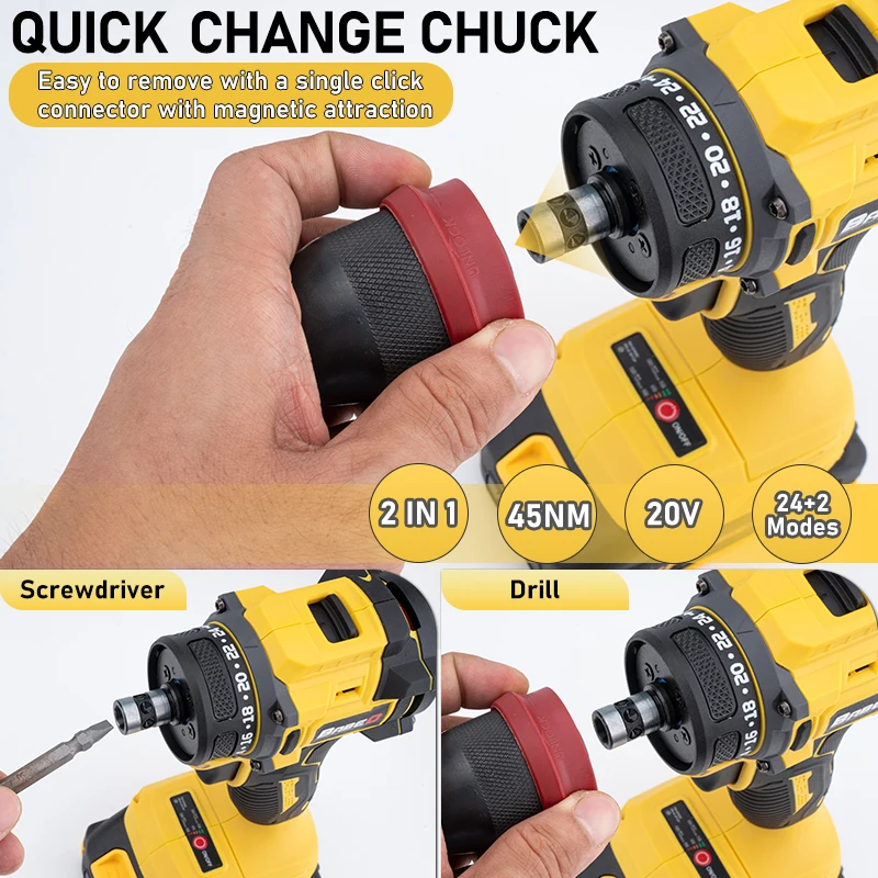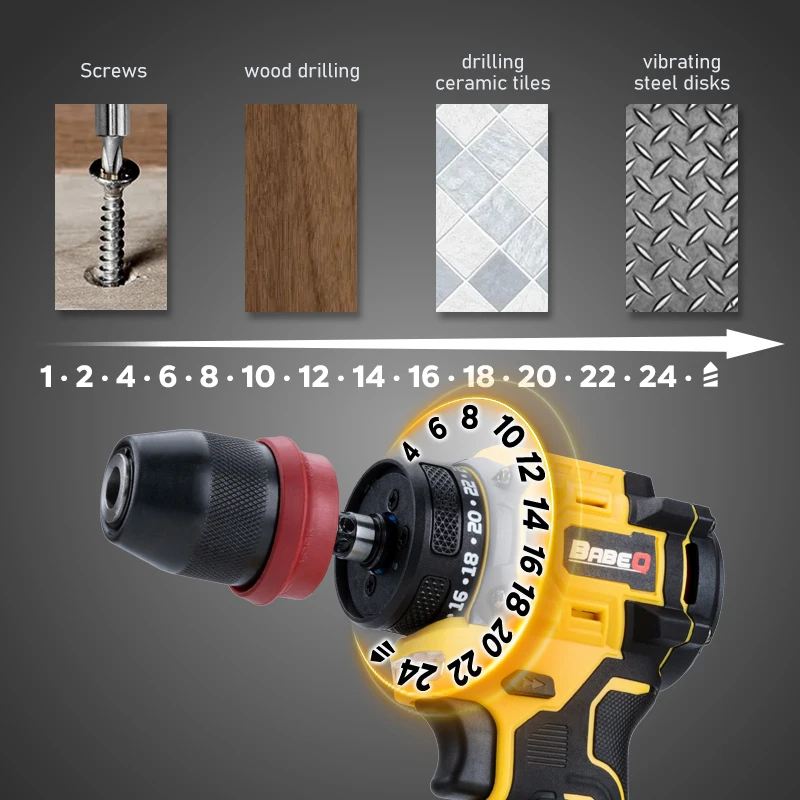 【24+2 Stage Settings】Provides 24 torque settings and 2 speed drilling modes to realize high-precision operation.