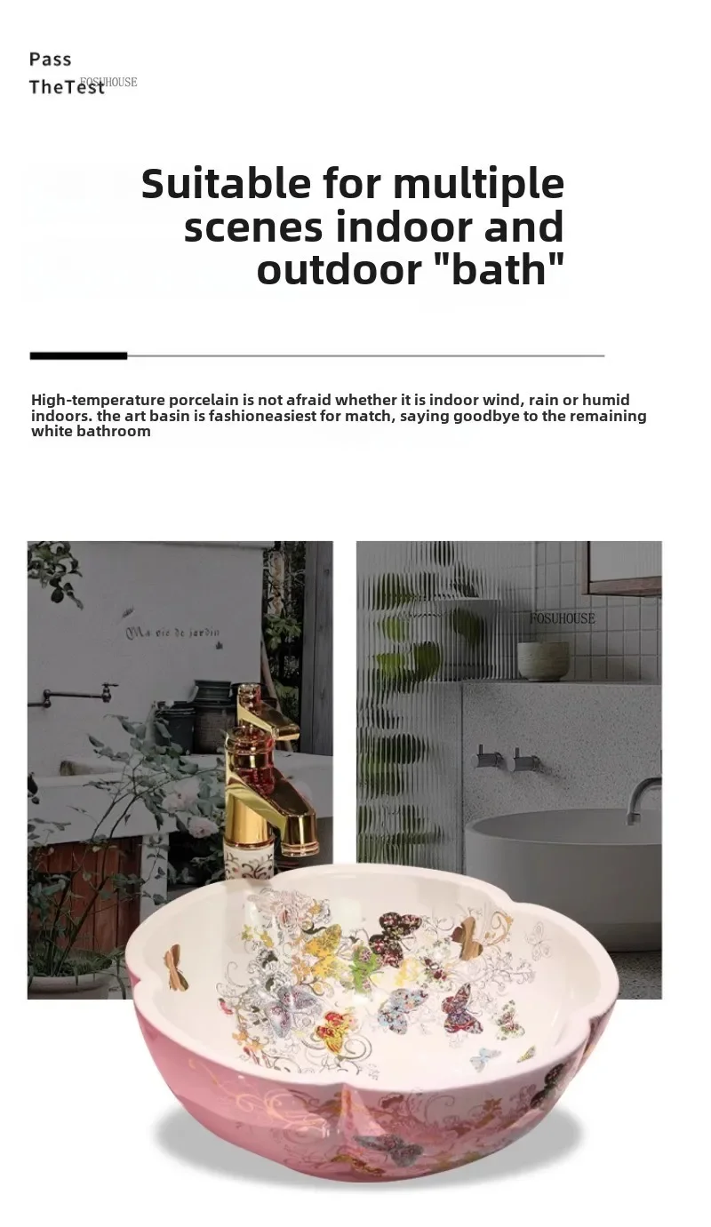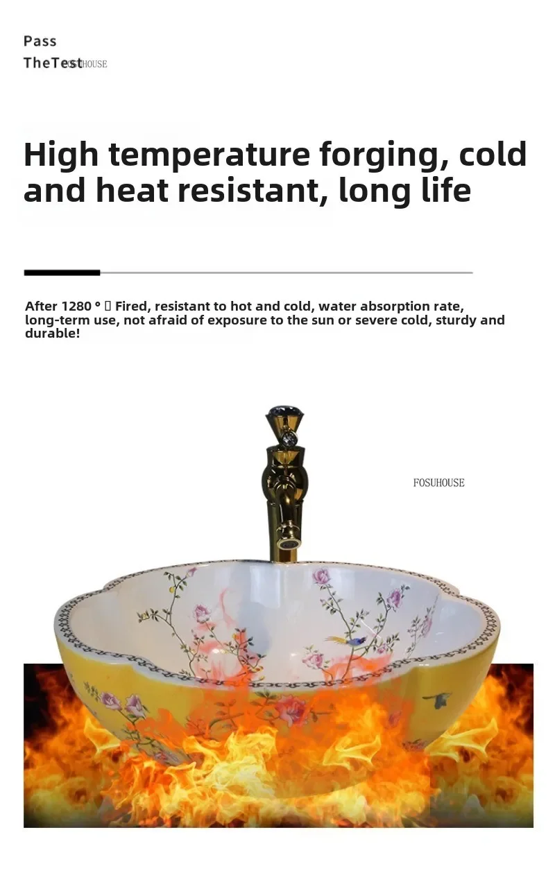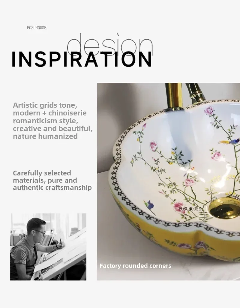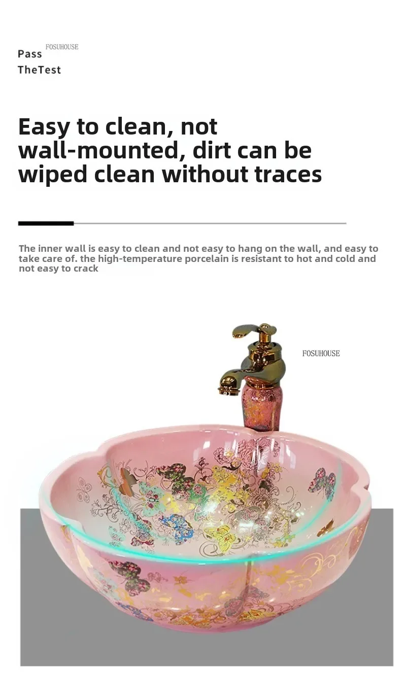 กลีบพิเศษรูปเคาน์เตอร์อ่างล้างหน้าเซรามิค Art อ่างล้างหน้ายุโรปอ่างล้างหน้าในครัวเรือนห้องน้ําอ่างล้างหน้าห้องน้ําอ่างล้างจาน e