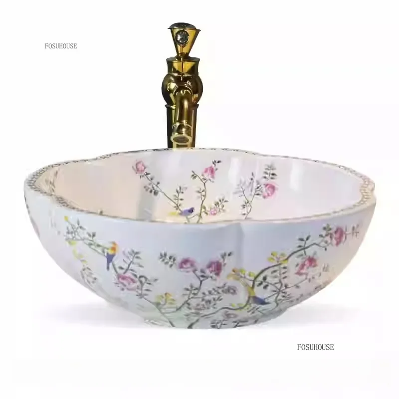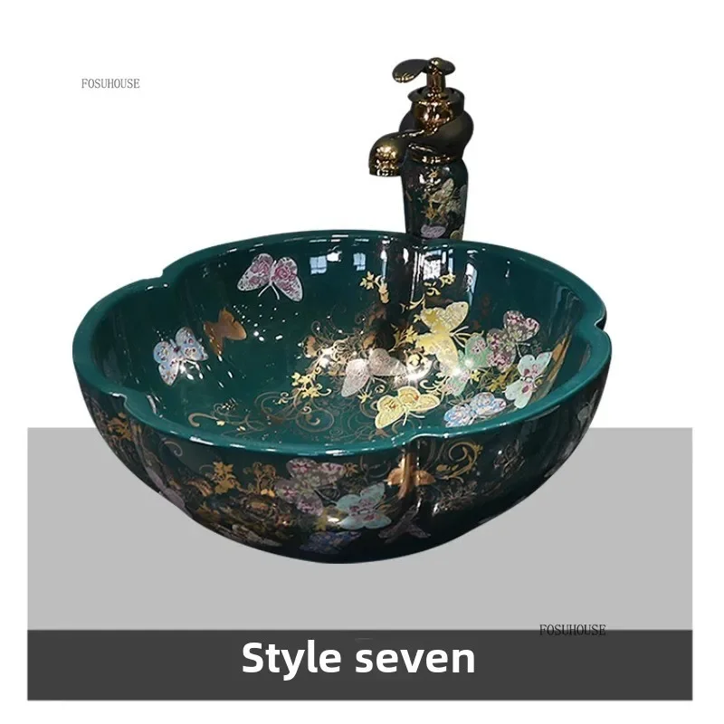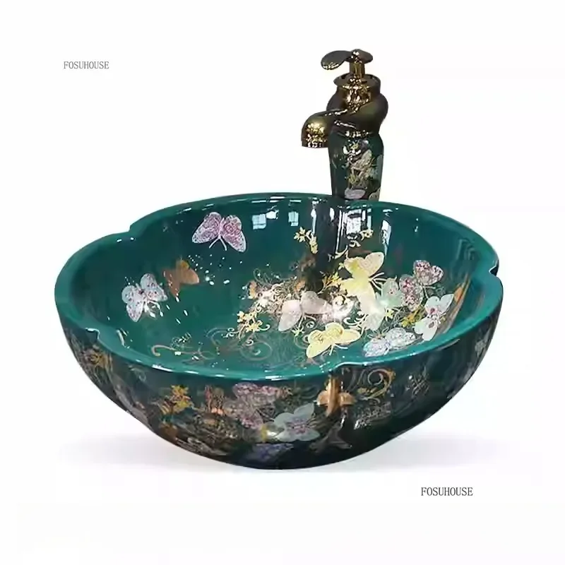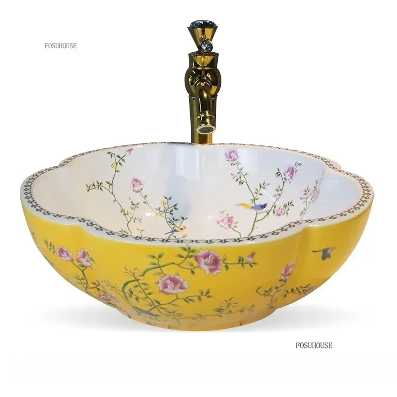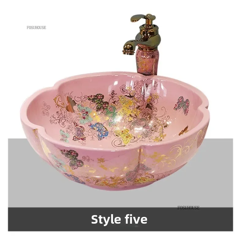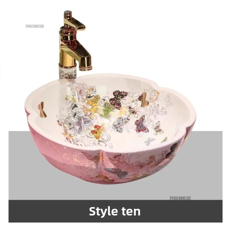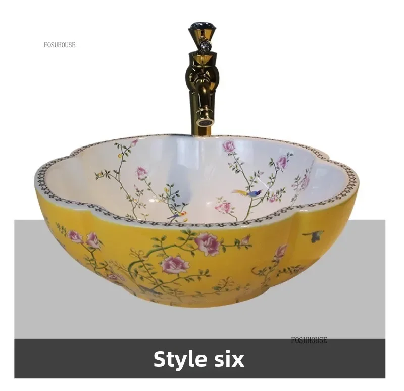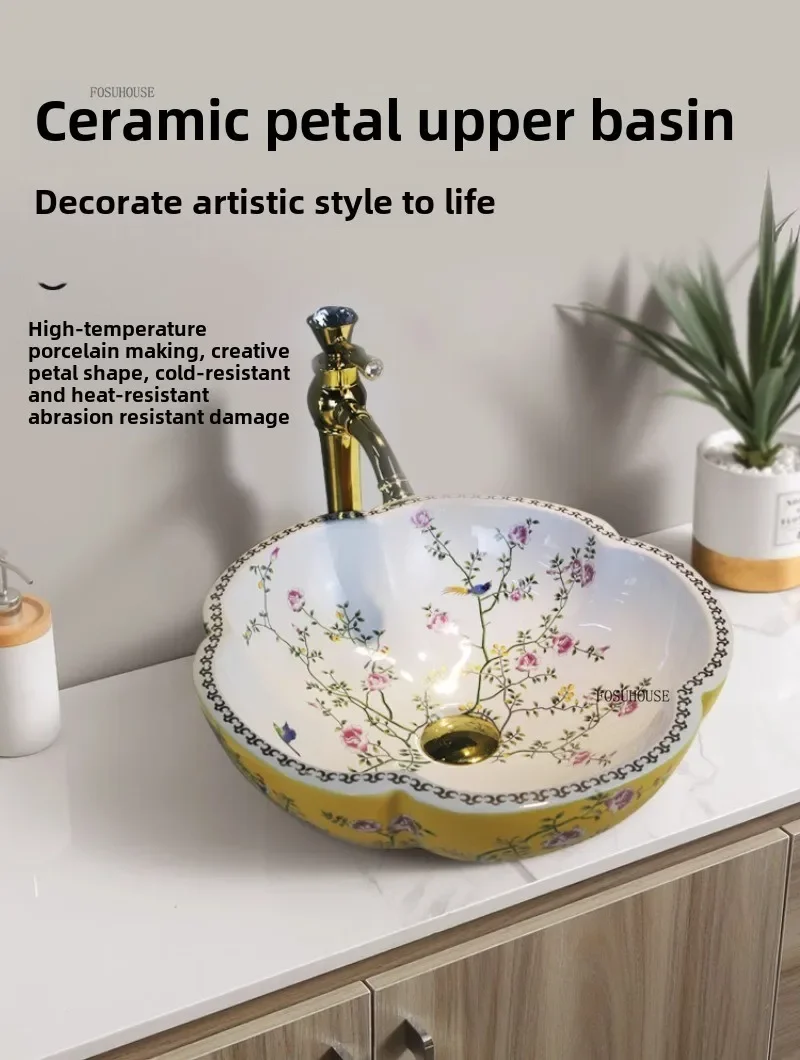 พิเศษกลีบเคาน์เตอร์อ่างล้างหน้าเซรามิค Art อ่างล้างหน้ายุโรปในครัวเรือนห้องน้ําอ่างล้างหน้าห้องน้ําอ่างล้างจาน