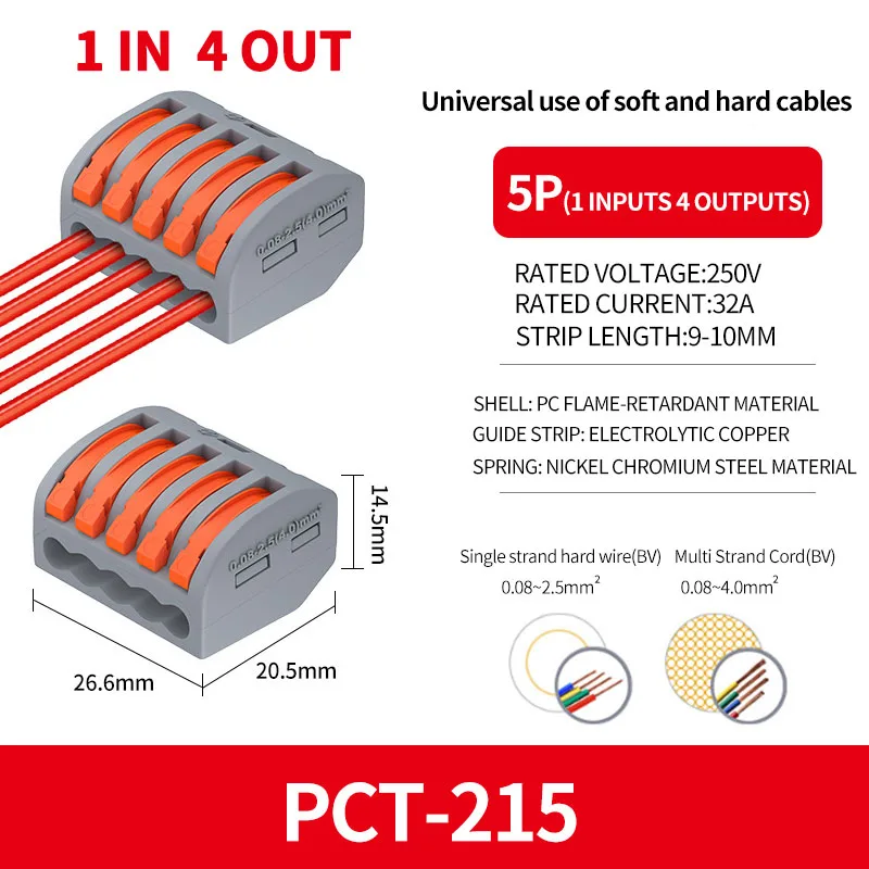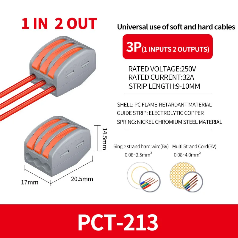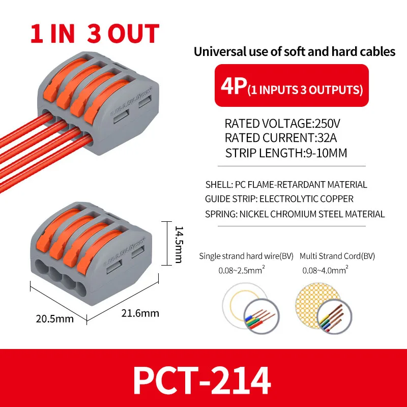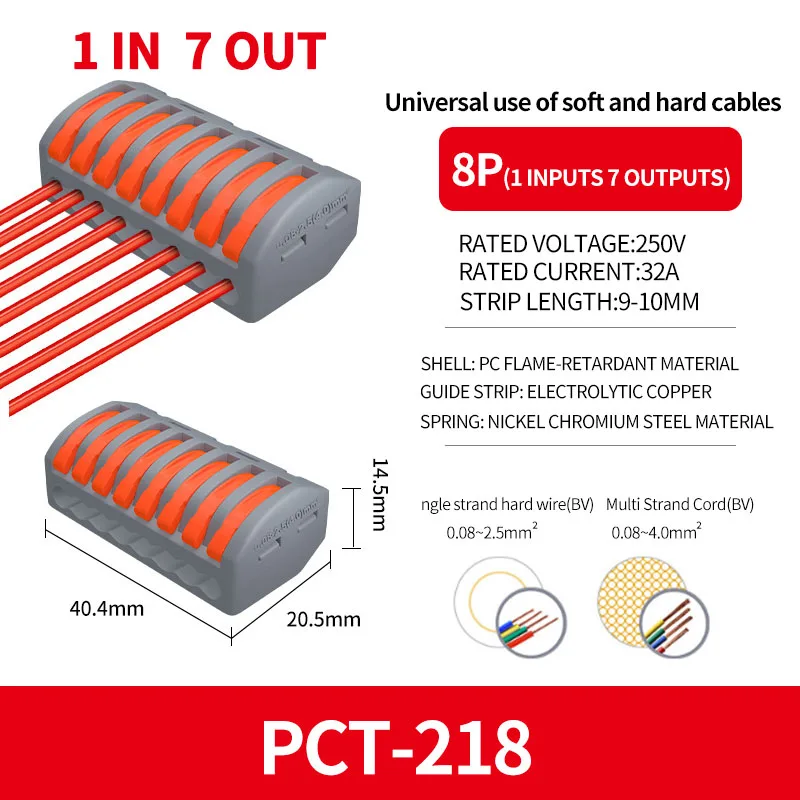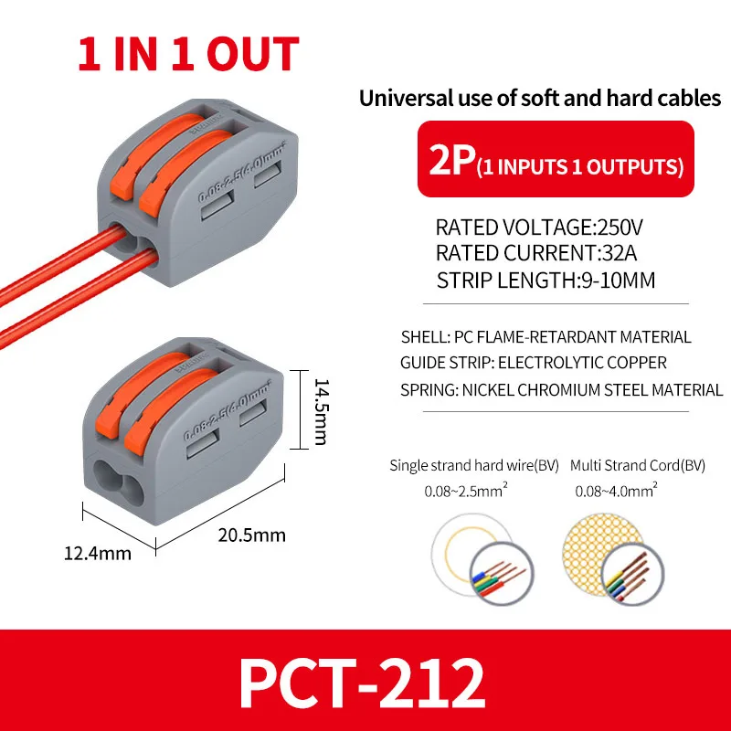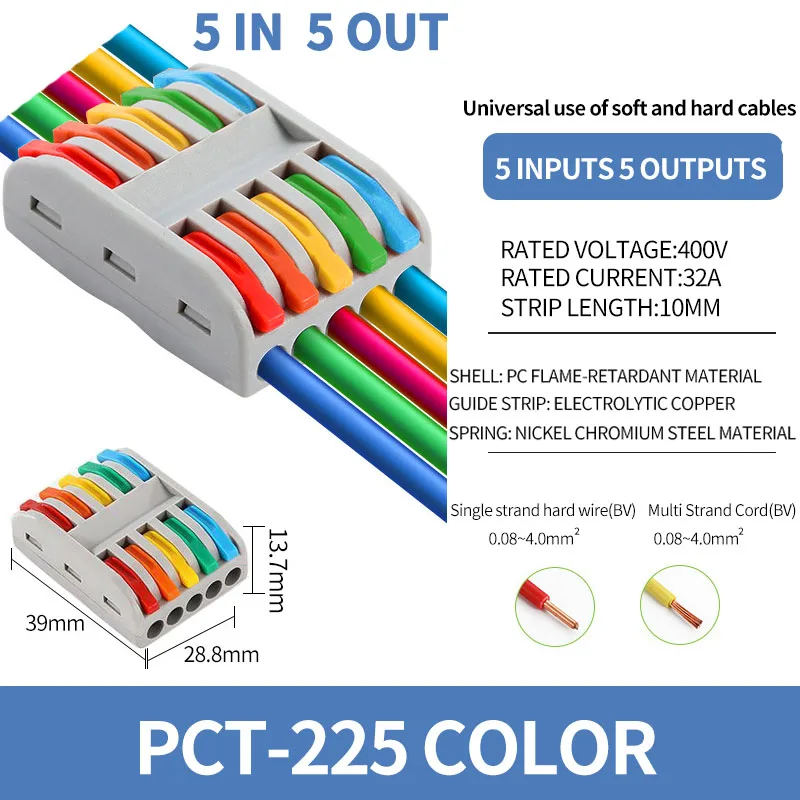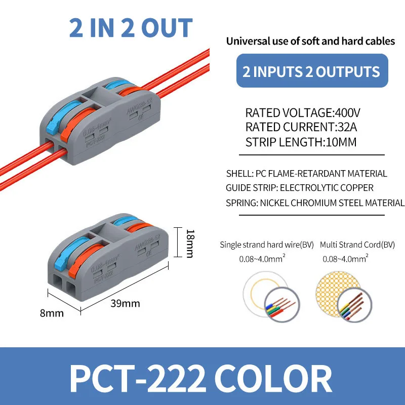 ขั้วต่อสายเคเบิ้ลอเนกประสงค์ขนาดเล็กมีสายฝาครอบกันฝุ่นเร็ว10/1000ชิ้น PCT-222ขั้วต่อแบบพุชอินตัวนำ/224 SPL-42/62 SPL-2/3/1