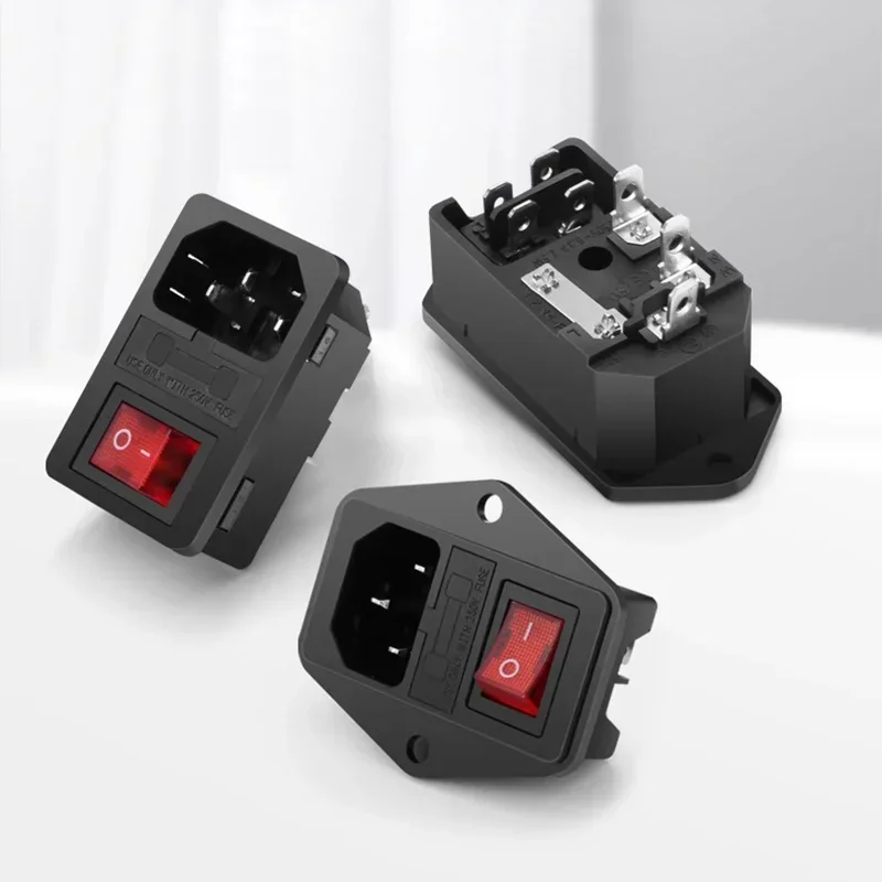 5/20 ชิ้น AC Power Plug Socket Rocker Switch IEC 320 C13 C14 3Pin ชายหญิงขั้วต่อไฟฟ้า 250 โวลต์ 10A ฟิวส์และโคมไฟสีแดง