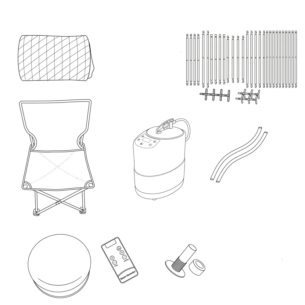 แพคเกจรวม: เต็นท์ซาวน่า, เครื่องกำเนิดไอน้ำ, ท่อ, กล่องสมุนไพร, รีโมทคอนโทรล, อังกฤษ maunal, เก้าอี้พับ