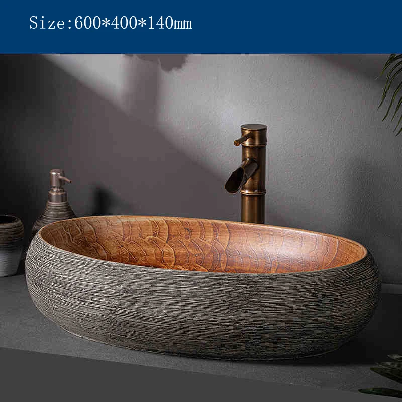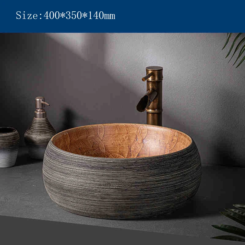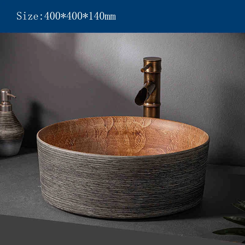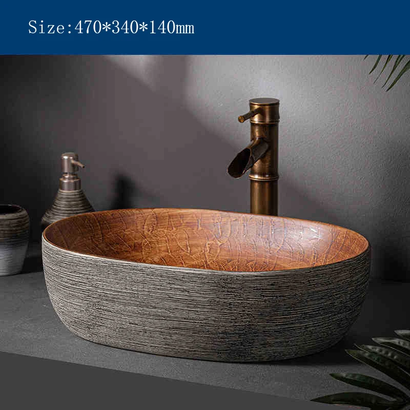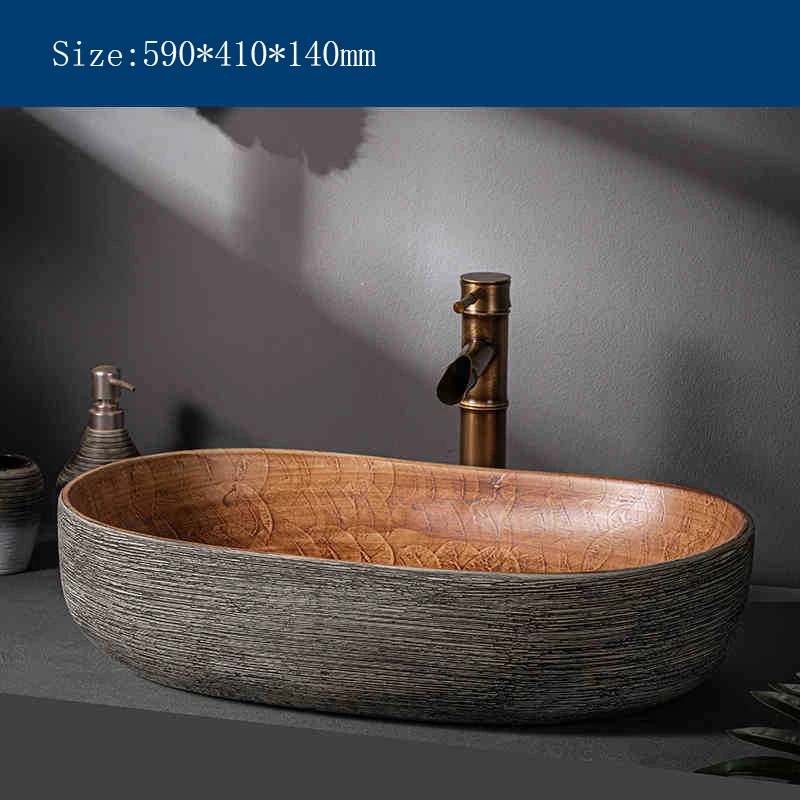 อ่างล้างหน้าทรงวินเทจ ZAPPO สไตล์ศิลปะ ทำจากเซรามิกแบบวางบนเคาน์เตอร์ ลายไม้โบราณ สำหรับห้องน้ำและระเบียง