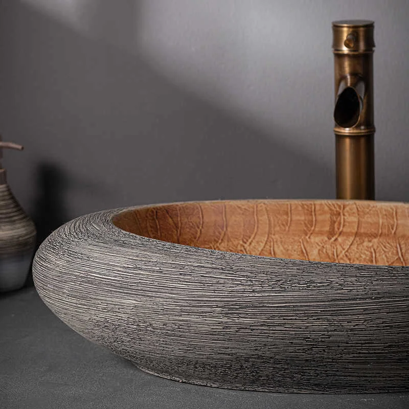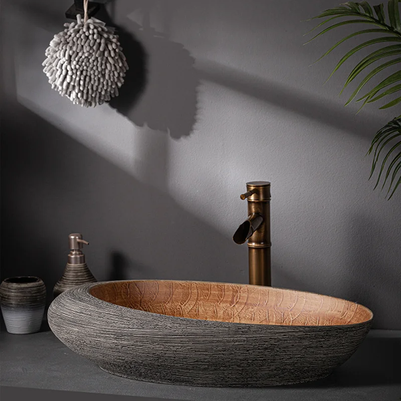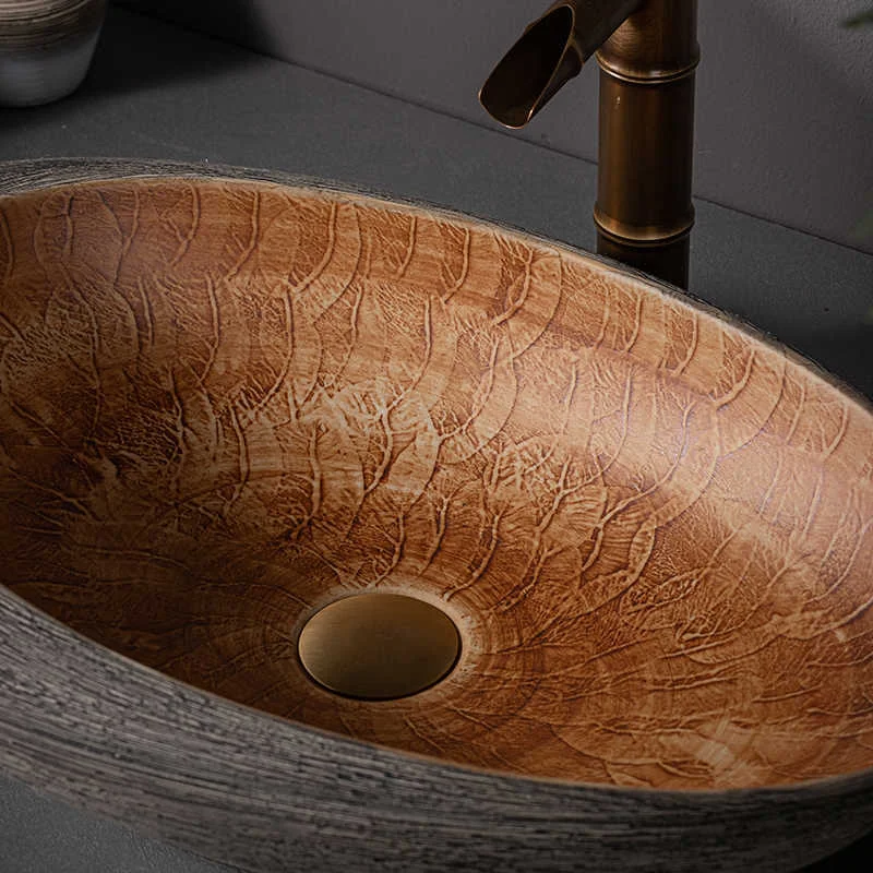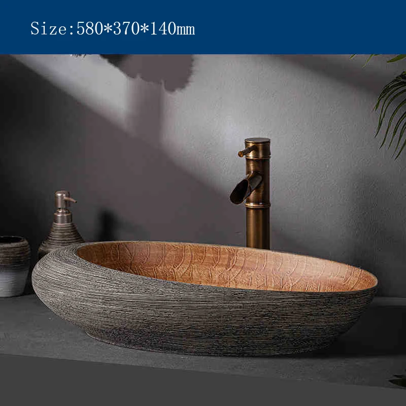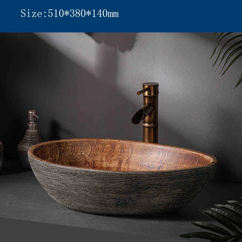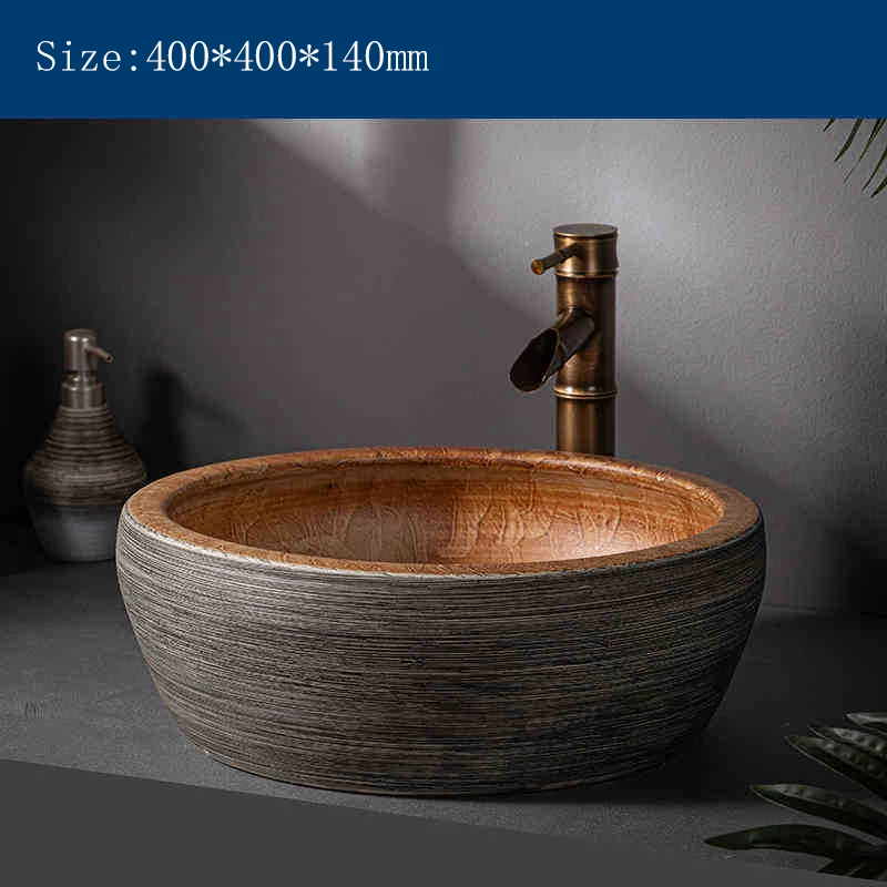 อ่างล้างหน้าทรงวินเทจ ZAPPO สไตล์ศิลปะ ทำจากเซรามิกแบบวางบนเคาน์เตอร์ ลายไม้โบราณ สำหรับห้องน้ำและระเบียง