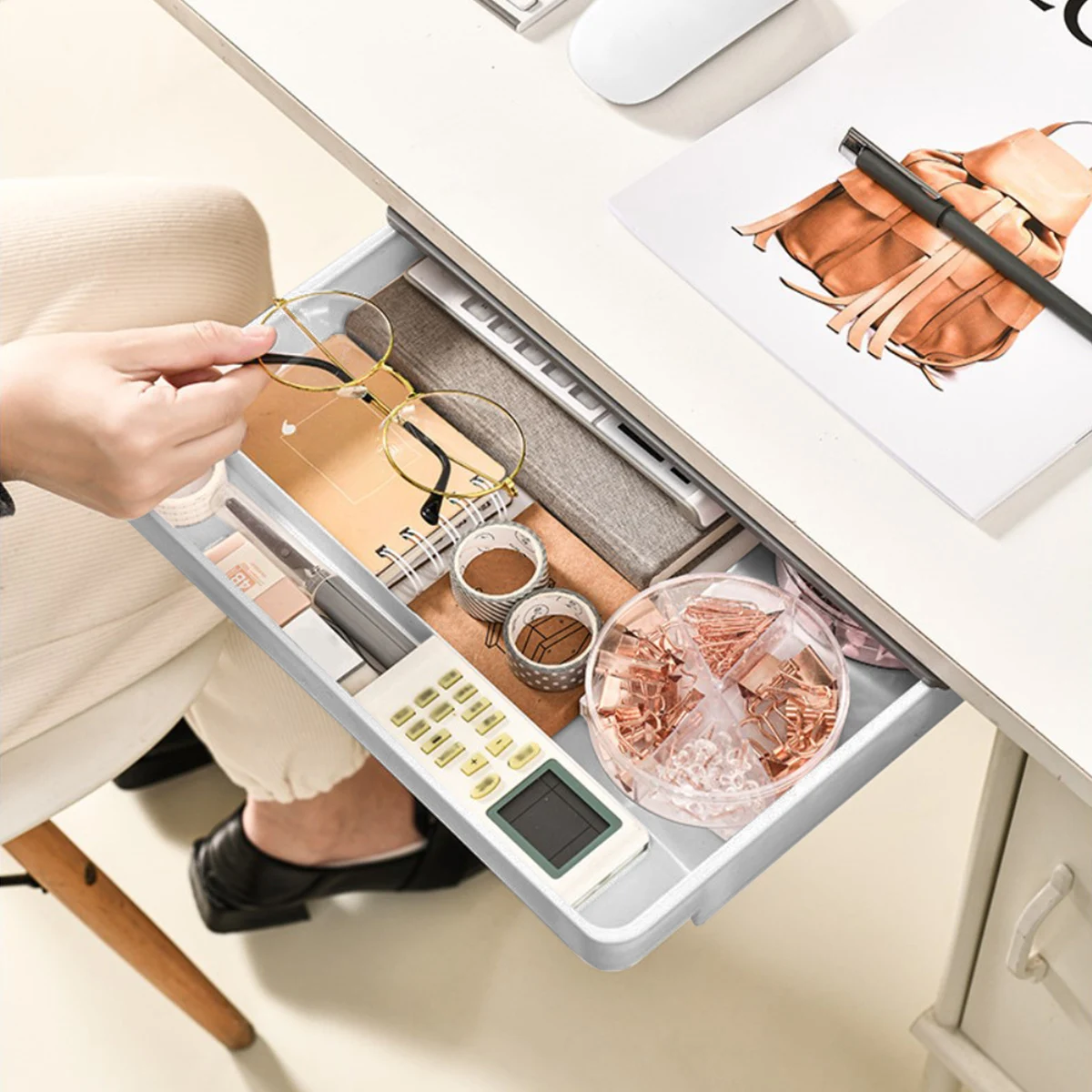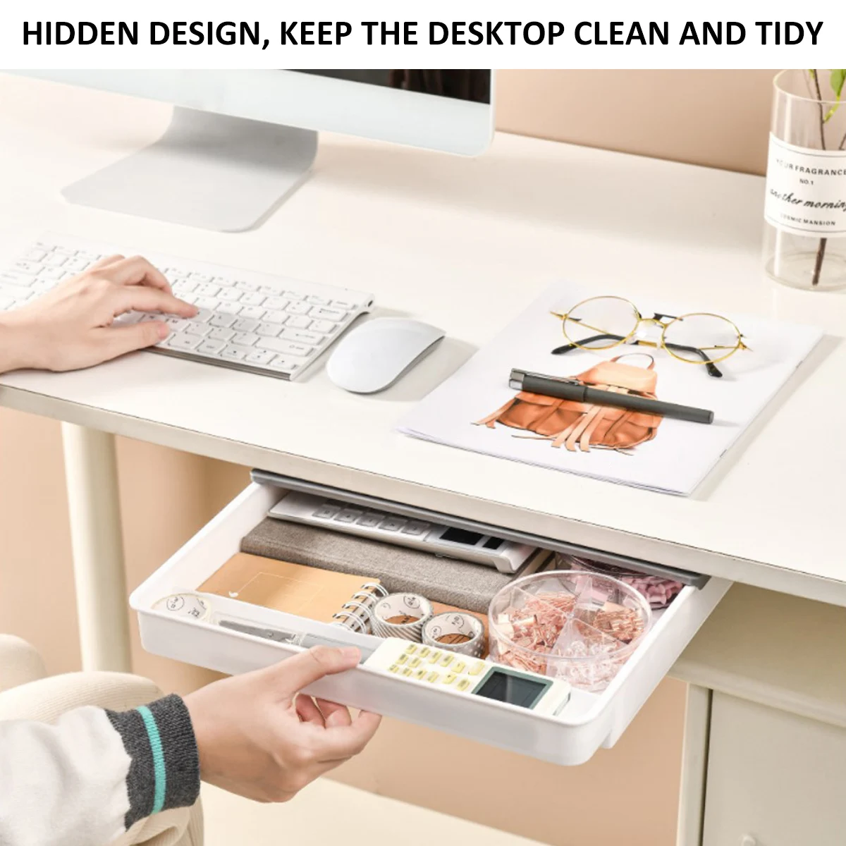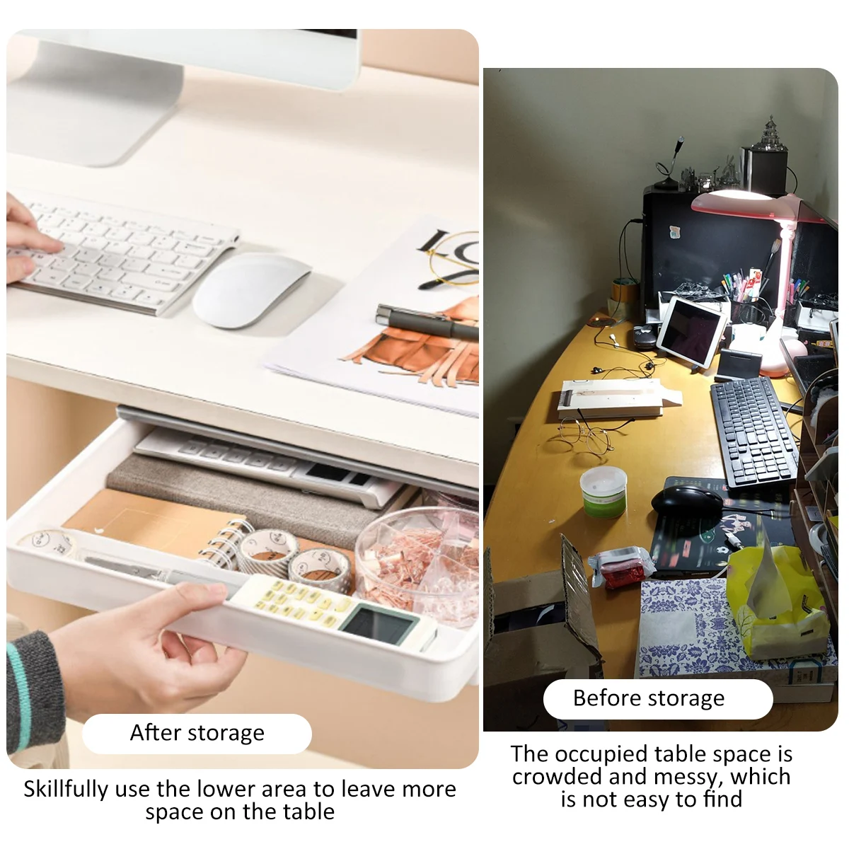 【การออกแบบที่ซ่อนอยู่】นี่คือตัวจัดการพื้นที่เก็บข้อมูลบนเดสก์ท็อปที่ดีซ่อนอยู่ใต้โต๊ะซึ่งสามารถเก็บของชิ้นเล็กๆได้ทุกชนิดปฏิเสธโต๊ะที่เลอะเทอะและสร้างพื้นที่ที่สะอาดและเรียบร้อยสำหรับผู้ใช้แต่ละคน