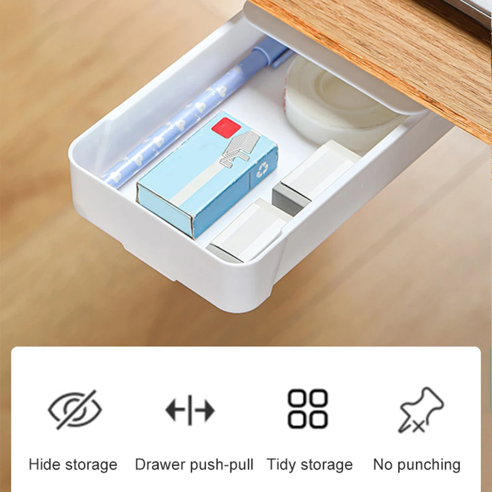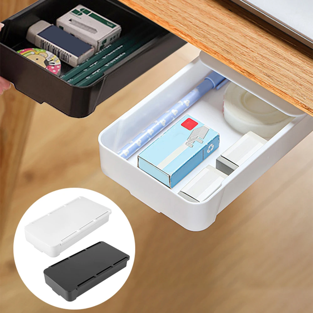 กล่องเก็บเครื่องเขียนมีกาวในตัวอุปกรณ์จัดระเบียบใต้โต๊ะในลิ้นชักสำหรับบ้านและสำนักงาน