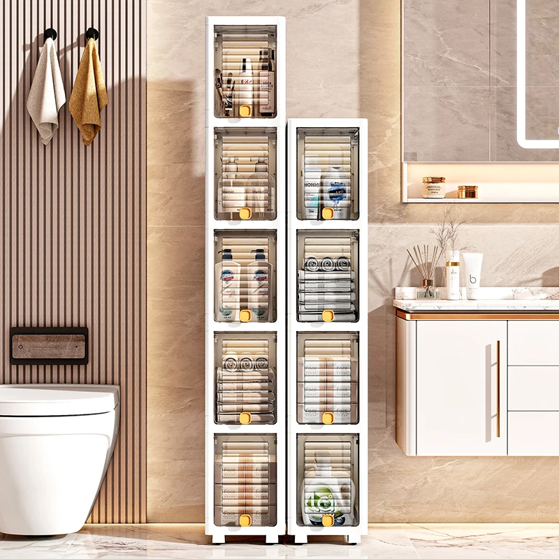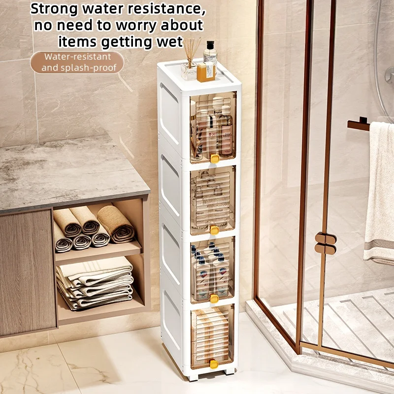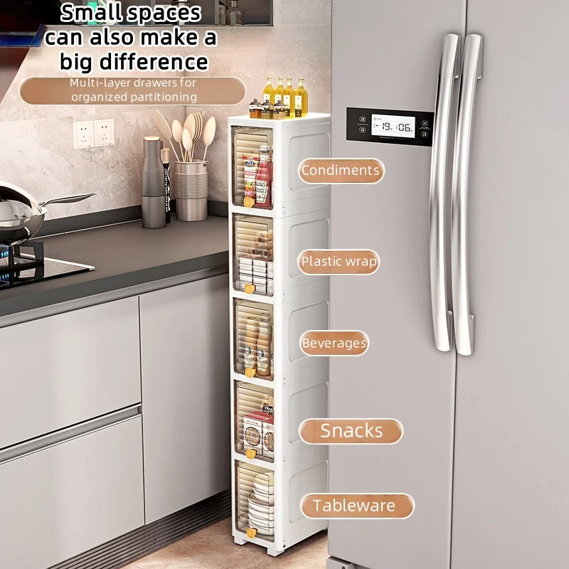 ตู้เก็บของแบบพลิกเปิด ขนาด 19 ซม. ดีไซน์บางเฉียบ พร้อมชั้นวางหลายชั้น ความจุขนาดใหญ่ เหมาะสำหรับห้องครัว ห้องนั่งเล่น ห้องน้ำ