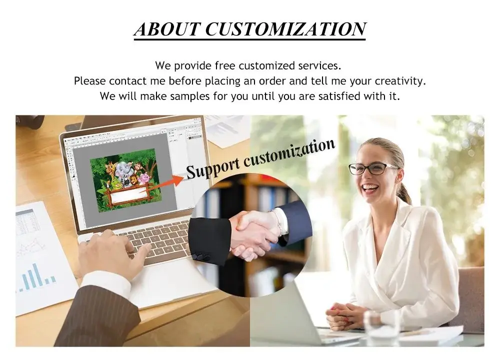 1.บอกเราภาพ ข้อความ และขนาดที่คุณต้องการปรับแต่งหากคุณต้องการเพิ่มรูปภาพ โปรดส่งรูปภาพความละเอียดสูงของบุตรหลานของคุณ