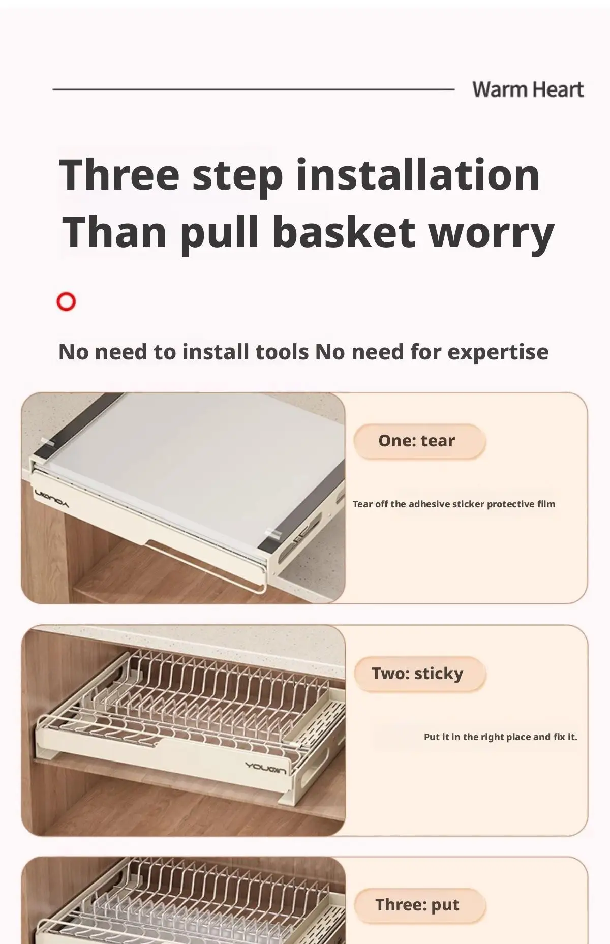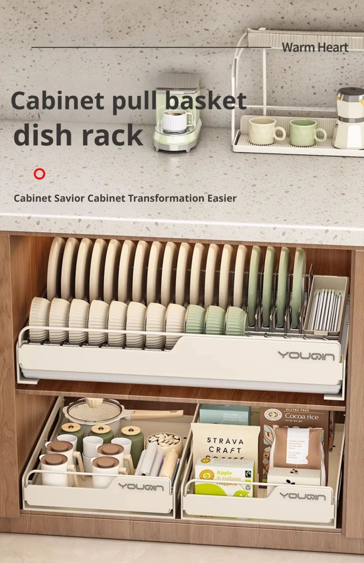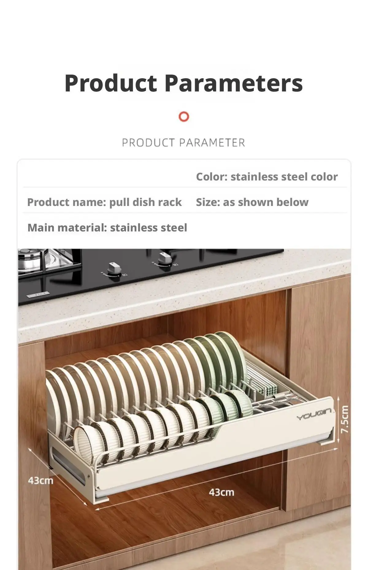 ชั้นเก็บจานสแตนเลสดึงตะกร้าจานชามท่อระบายน้ําห้องครัวตู้ลิ้นชักเลื่อนผู้ถือ Organizer Rack
