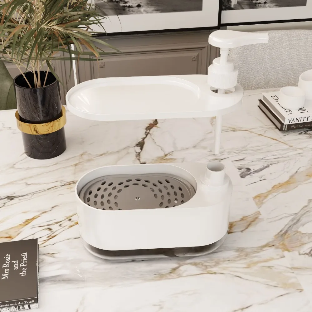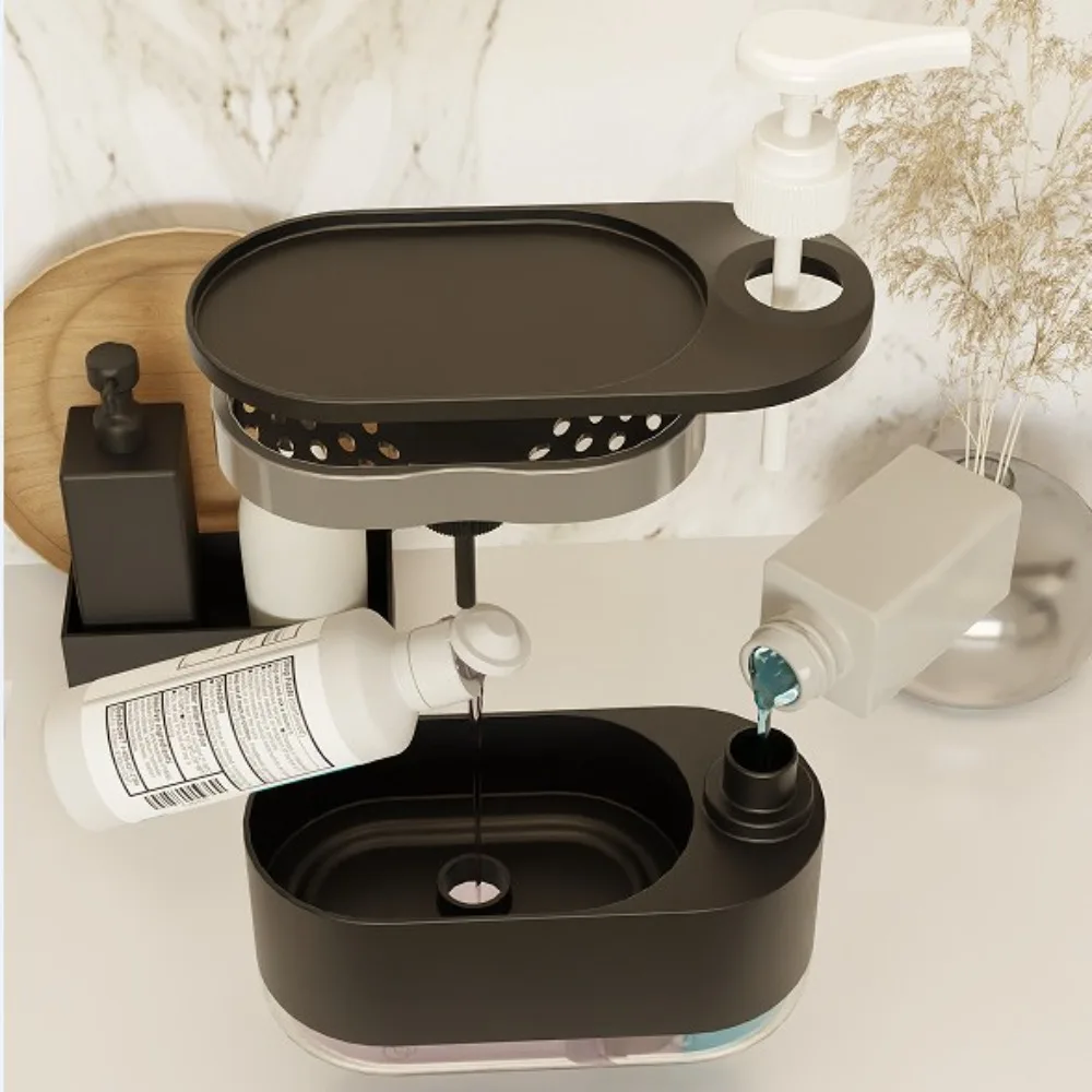ที่จ่ายสบู่แบบคู่ขนาดใหญ่พร้อมที่วางฟองน้ำ แบบกดด้วยมือ อุปกรณ์ครัว อุปกรณ์ห้องน้ำ