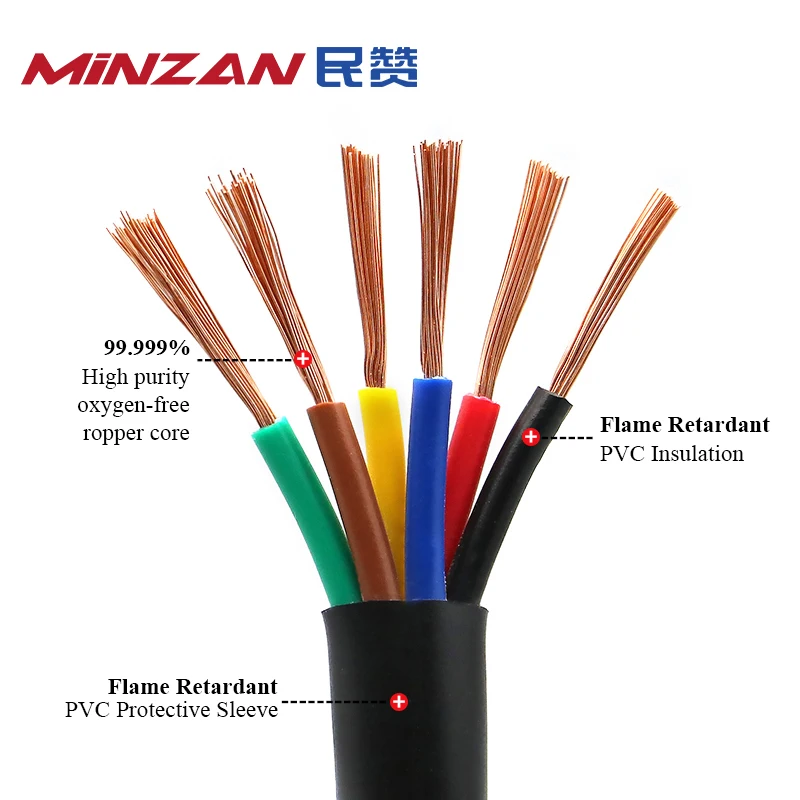 RVV 4 ทองแดงสายไฟ PVC Sheathed ฉนวนกันความร้อน 2 3 4 5 6 Core 20 17 15 13AWG DIY สัญญาณควบคุมสายช่องสายสัญญาณเสียง
