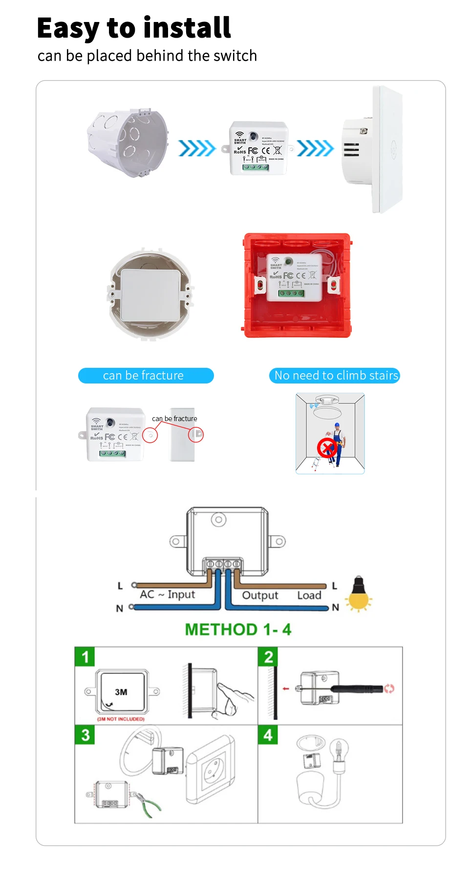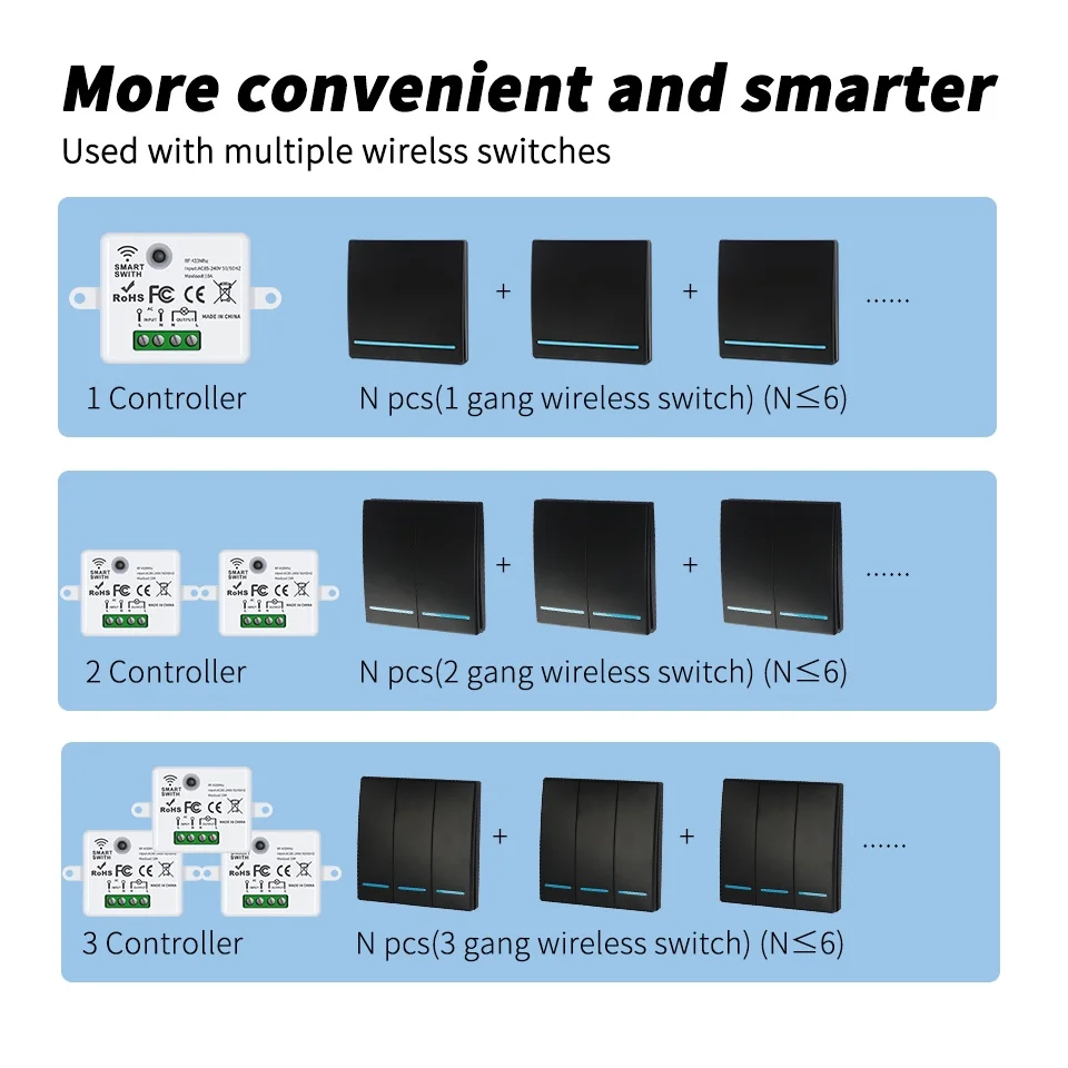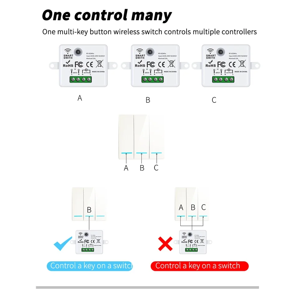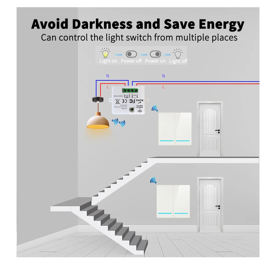 ข.ที่วางโคมหนึ่งอันสามารถจับคู่กับสวิตช์สติกเกอร์ฟรีหลายอันพร้อมกันได้ เพื่อให้ทราบว่าหลอดไฟหนึ่งดวงสามารถเปลี่ยนหลอดไฟได้หลายที่!แก้ปัญหาการไม่มีสวิตช์บนเตียง เปิดไฟในเวลากลางคืน การออกแบบวงจรที่ไม่เหมาะสม ความสูงของสวิตช์ที่ไม่เหมาะสมสําหรับผู้สูงอายุและเด็กที่บ้าน และการเดินสายไฟที่ไม่สะดวกที่บ้านเนื่องจากการเดินสายไฟที่เสื่อมสภาพ!