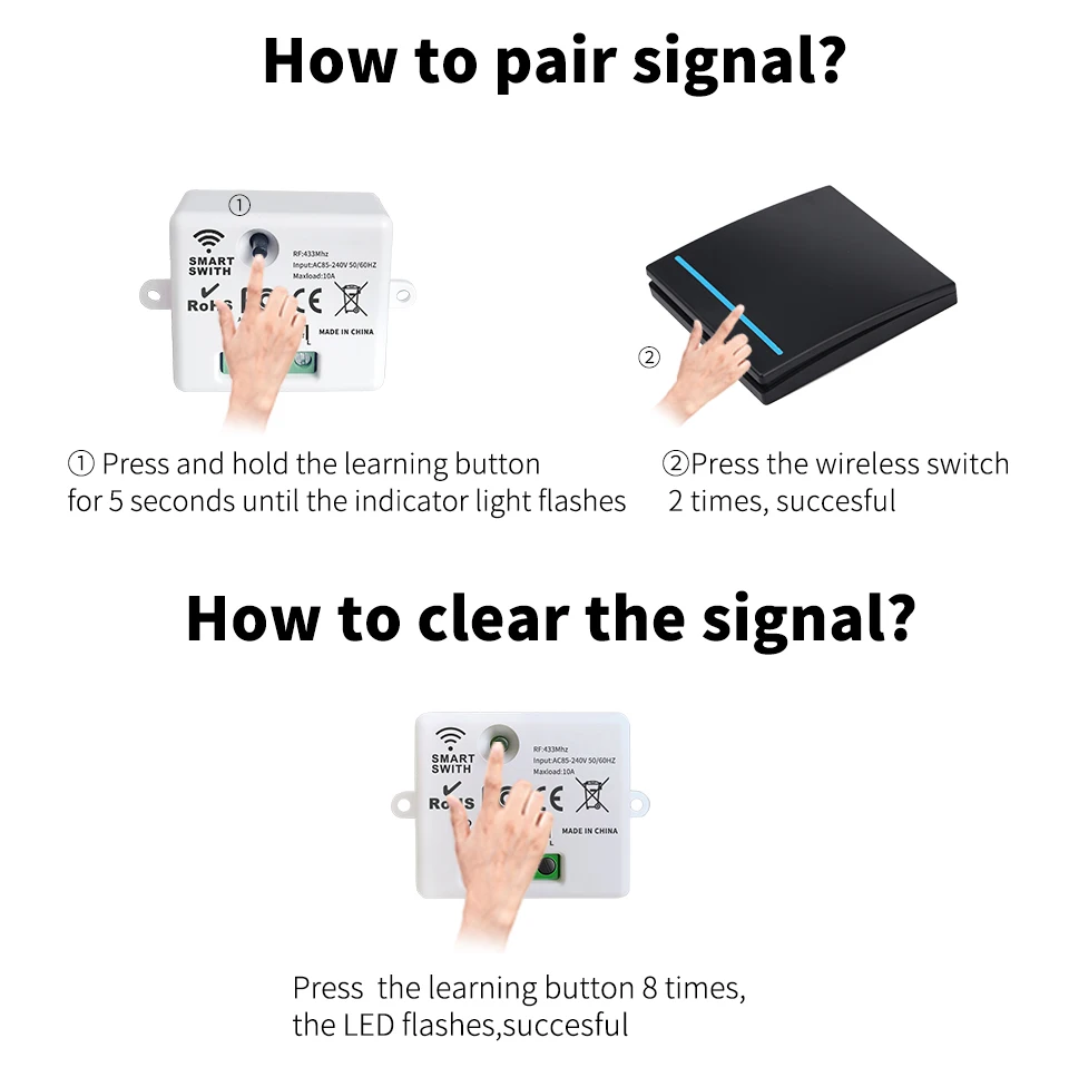 Hococa 433Mhz ไร้สายสวิทช์ Phosphor Strip 1/2/3 Gang 86 แผง 10a รีเลย์ควบคุมหลอดไฟ Led ตัวรับสัญญาณรีโมทคอนโทรล