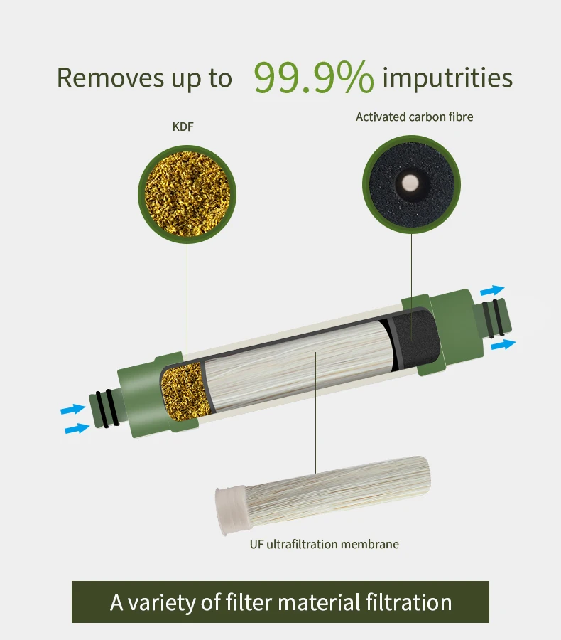 เหมาะสําหรับน้ําพุบนภูเขา แม่น้ํา ทะเลสาบ ลําธาร น้ําใต้ดิน น้ําฝน น้ําหิมะ น้ําผิวดิน น้ําประปา และแหล่งน้ําจืดอื่นๆ โดยไม่มีมลพิษทางเคมี(ไม่สามารถกรองน้ําทะเลได้ รีเวอร์สออสโมซิสสามารถขจัดโลหะหนักและเกลือได้)