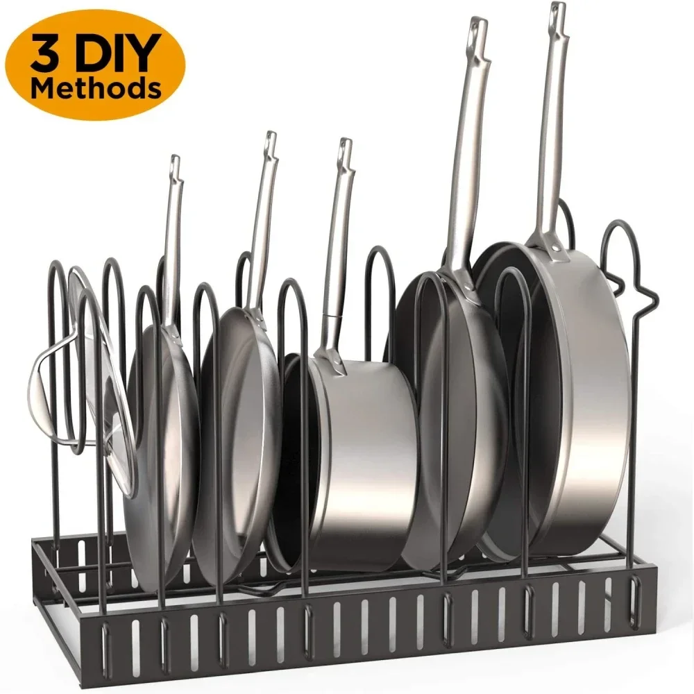 5/8 ชั้นปรับหม้อและกระทะOrganizer Rack 3 DIYวิธีHeavy Dutyโลหะกระทะหม้อฝาปิดผู้ถือRackสําหรับห้องครัว